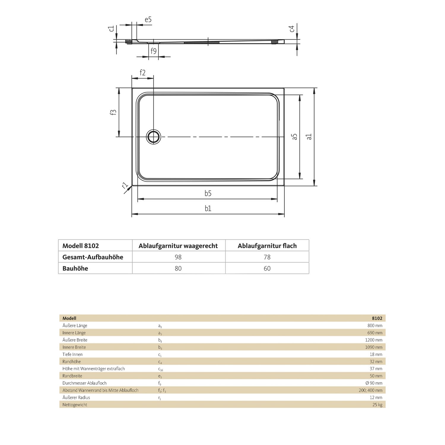 - kompatibel mit allen Duschwannen-Ablaufgarnituren und den Duschwannen-Installationsboxen aus der SCHÖNER WOHNEN-Kollektion