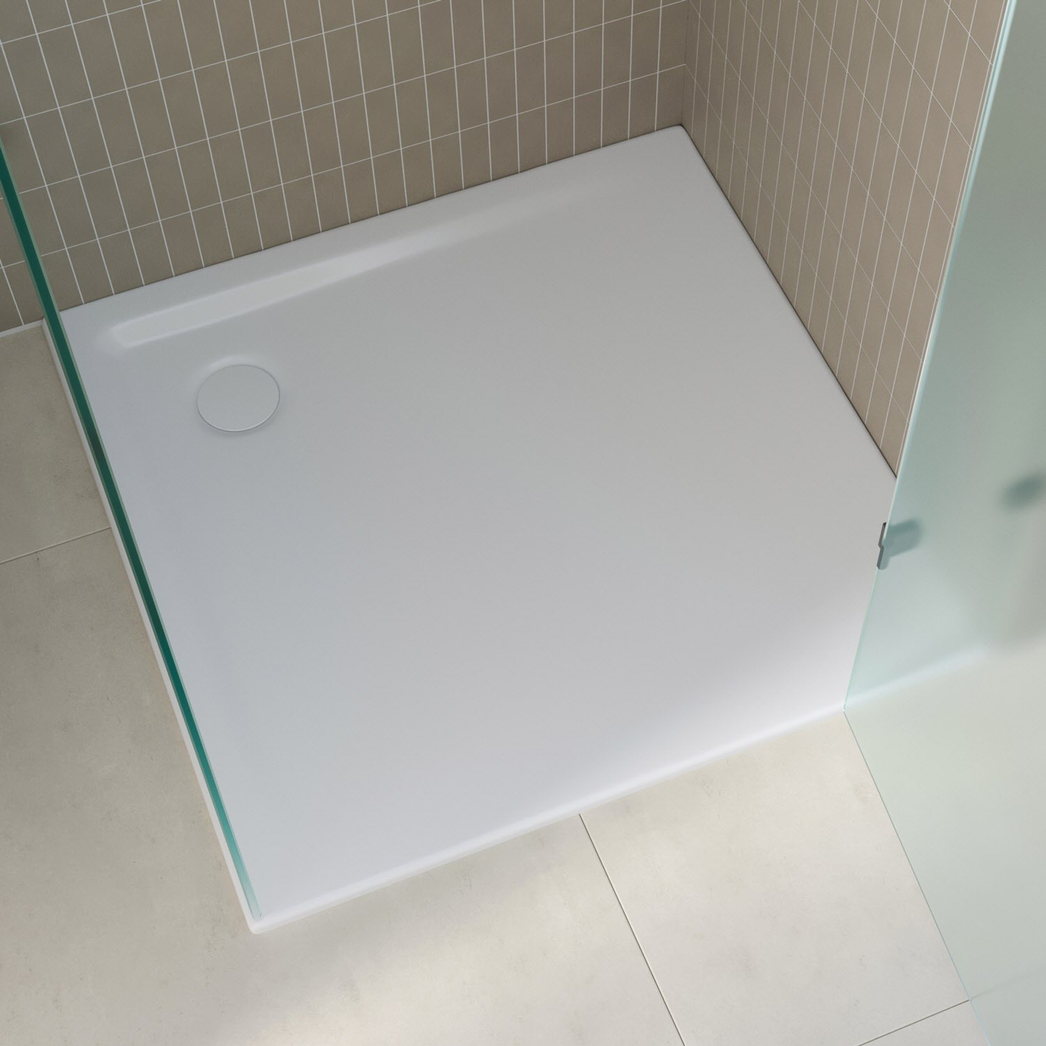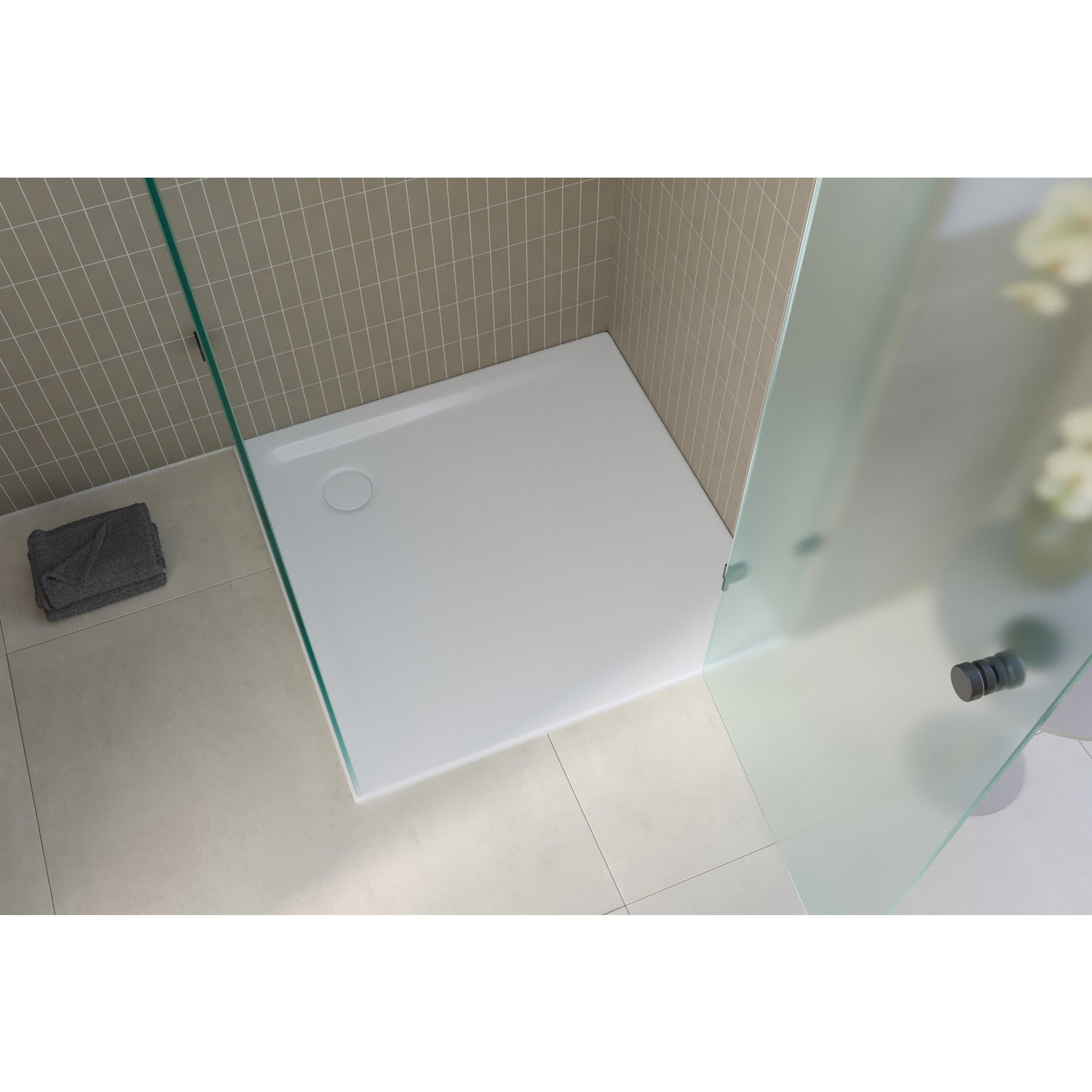 Unsere bodengleiche Duschfläche setzt neue Maßstäbe für Ihr Badezimmer, indem sie einen schwellenlosen Zugang von zwei Seiten und einen vergrößerten Bewegungsbereich bietet. Mit ihrer geringen Höhe ermöglicht sie einen mühelosen, ebenerdigen Einbau, selbst bei großen Fliesenformaten. Ihre schlichten Konturen, akkuraten Kanten und scharfen Ecken reduzieren Fugen und schaffen ein einheitliches Erscheinungsbild.