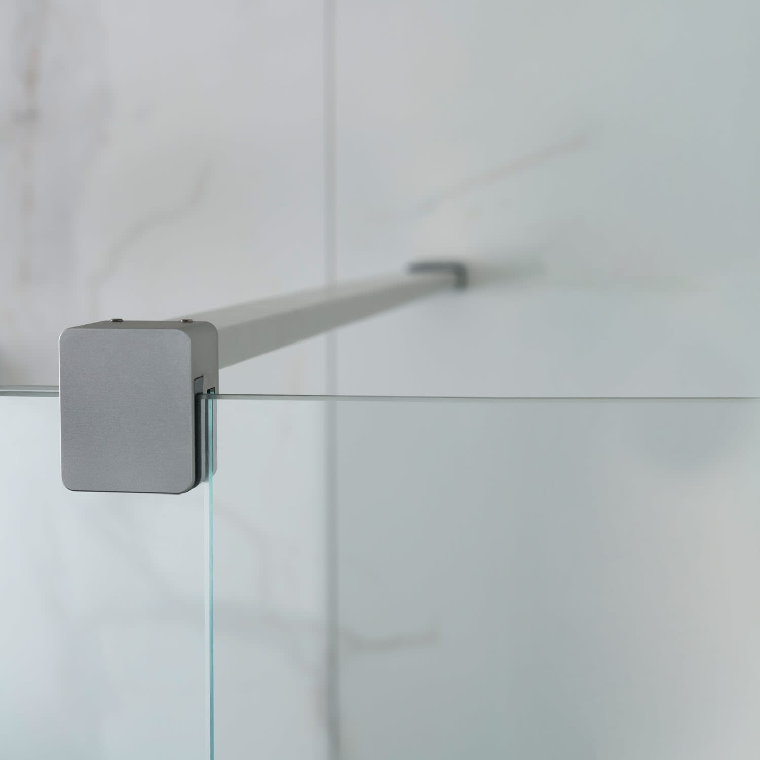Die Schiebetür mit Seitenwand der SCHÖNER WOHNEN-Kollektion aus der Serie FIT ist rahmenlos montierbar, hat schwarzmatte Aluminium-Beschläge und 8 mm starkes Einscheibensicherheitsglas (ESG). Mit einer Breite von max. 140 cm und einer Höhe von max. 210 cm ist sie großzügig dimensioniert und schützt zuverlässig vor Spritzwasser. Die Beschläge sind innen flächenbündig verarbeitet, was zusammen mit der schmutzabweisenden Nano-Glasbeschichtung die Reinigung ganz besonders einfach macht.
