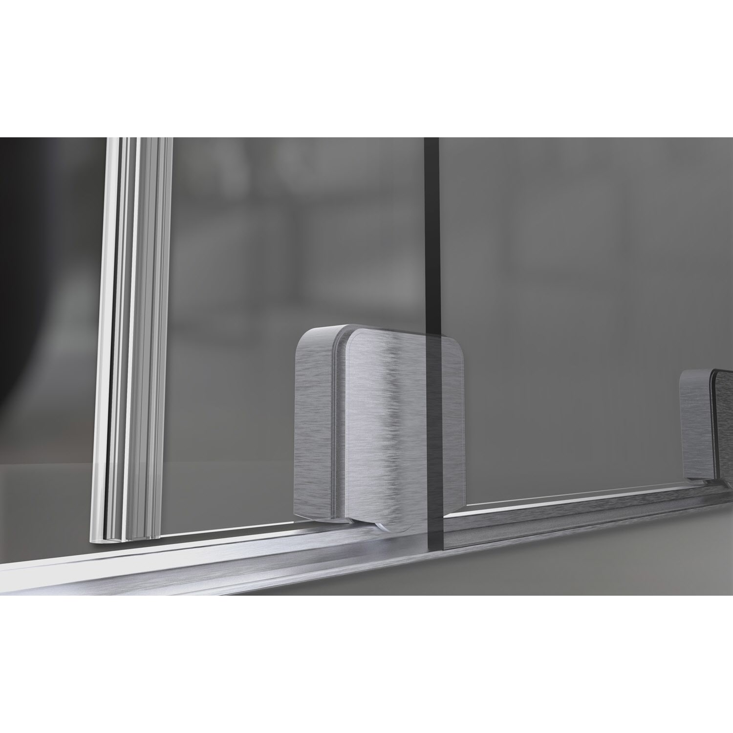 Das Gewicht des Glases wird auf die untere Laufschiene abgeleitet, die gleichzeitig als Schwallschutzprofil fungiert. Mit nur acht Millimetern Höhe trägt das Profil kaum auf. Diese Konstruktion ermöglicht auch die Führung des Schiebeelements mit nur einem Stabilisator.