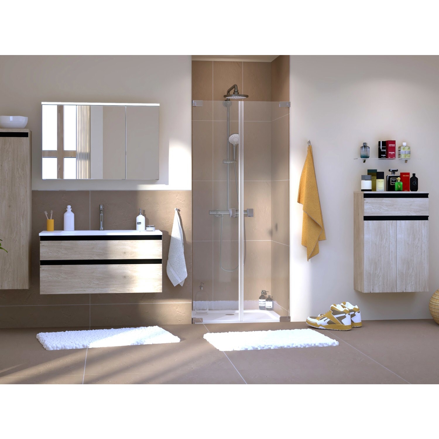 Nach jeder heißen Dusche entsteht Dampf, der am Glas der Duschabtrennung beschlägt. Das Abziehen der Glasscheibe wird zur morgendlichen Routine. Je durchgehender die Fläche, desto besser das Ergebnis. Die Türgriffe der Duschkabinen-Serie FIT lassen sich daher mittels Magnet schnell abnehmen und wieder aufklicken.