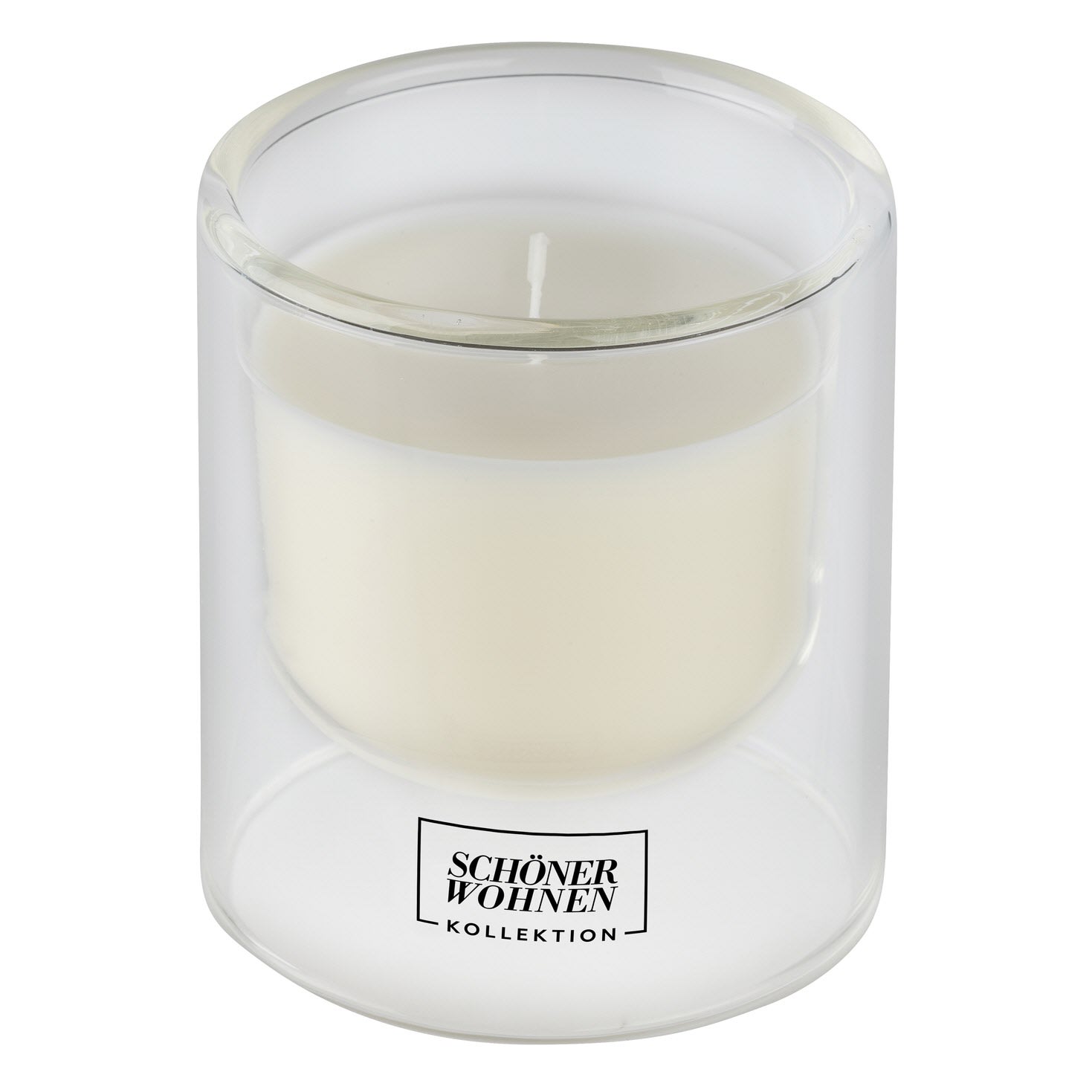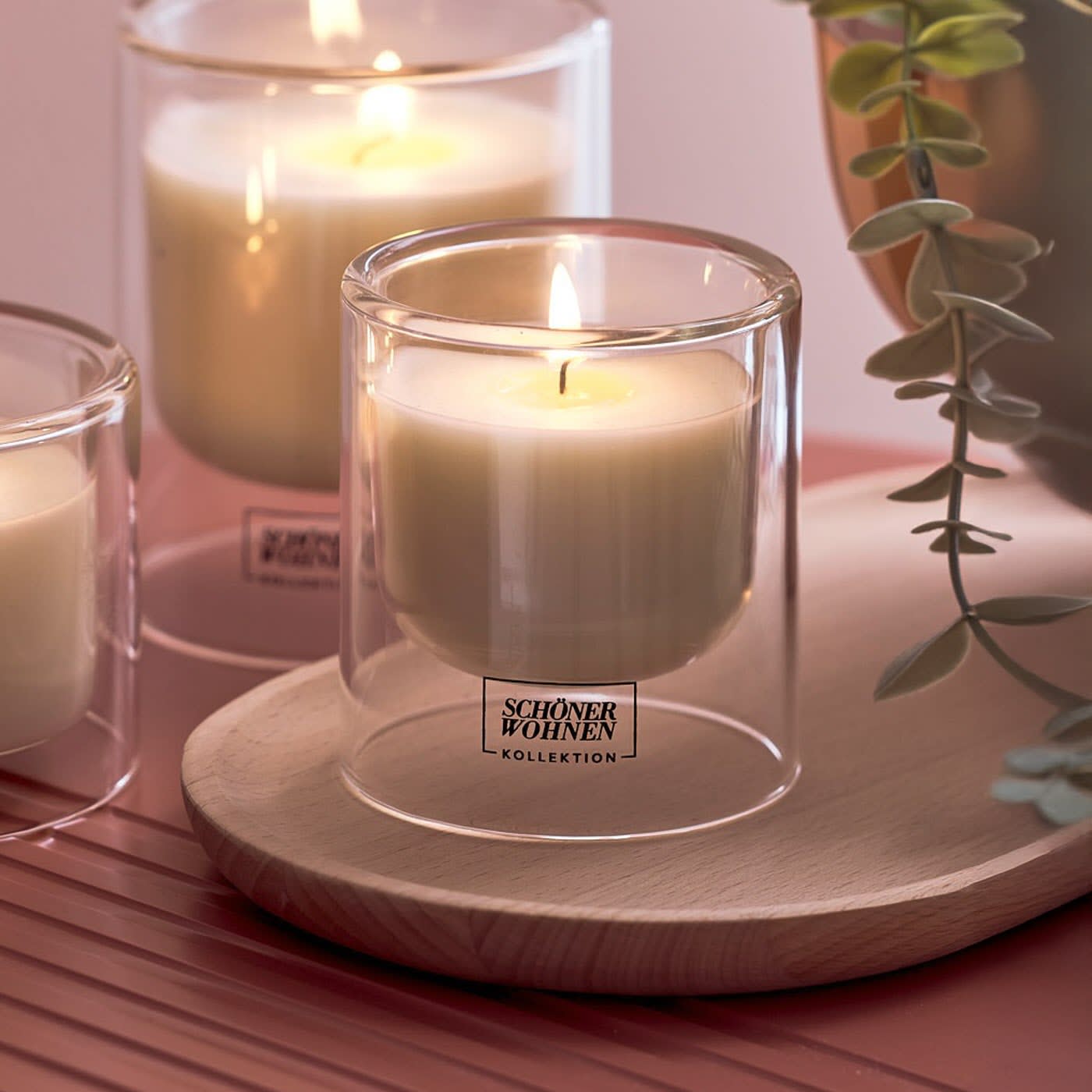 - 1 Duftkerze in doppelwandigem Glasbehältnis