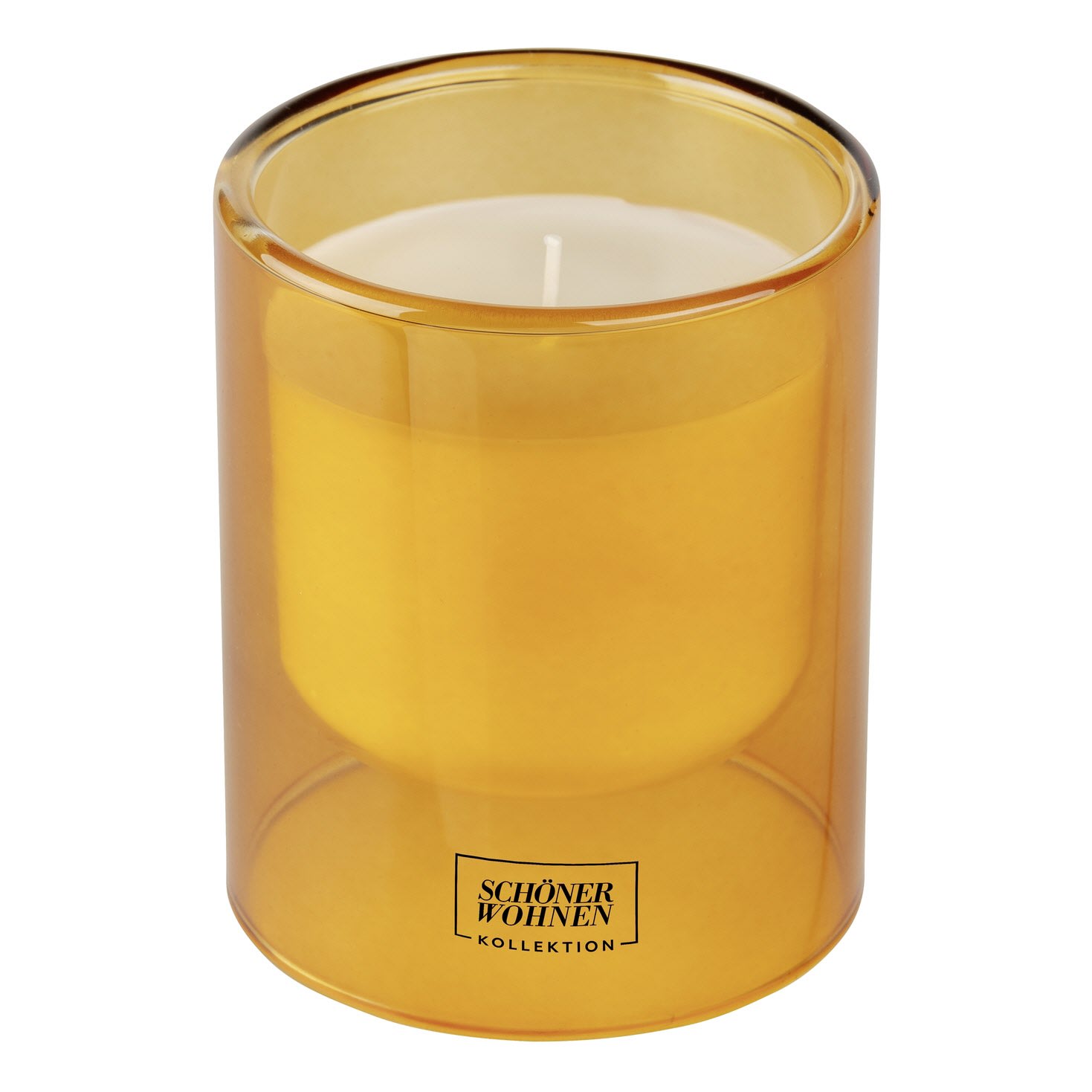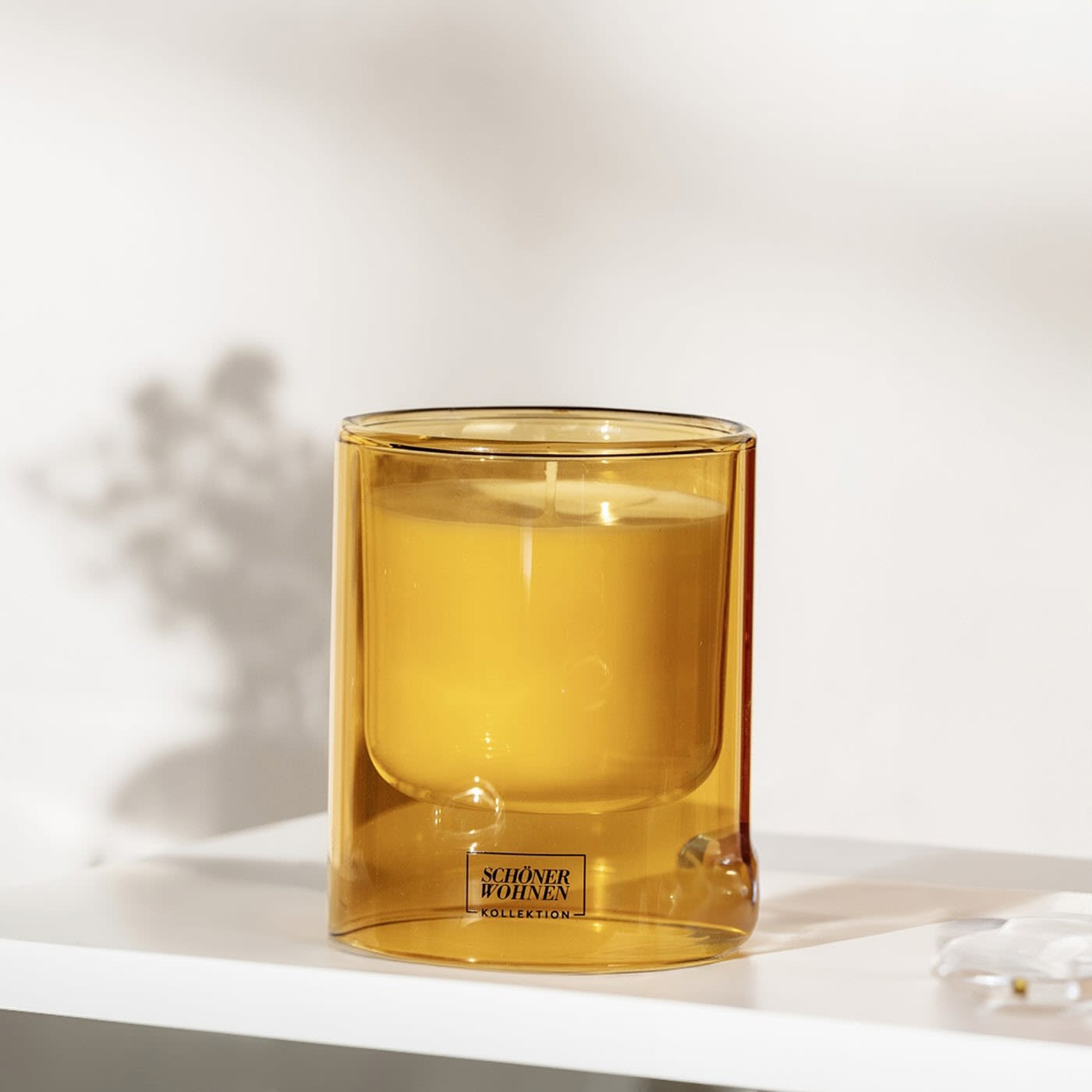 - Honigfarbenes Kerzen-Glas mit weißer Duftkerze