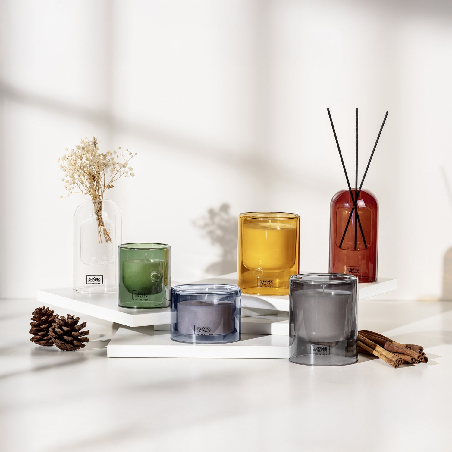 Genießen Sie zukünftig die behagliche Wärme der Vanille, eingefangen in unseren Duftkerzen, die in drei eleganten Größen nun die SCHÖNER WOHNEN-Kollektion bereichern.