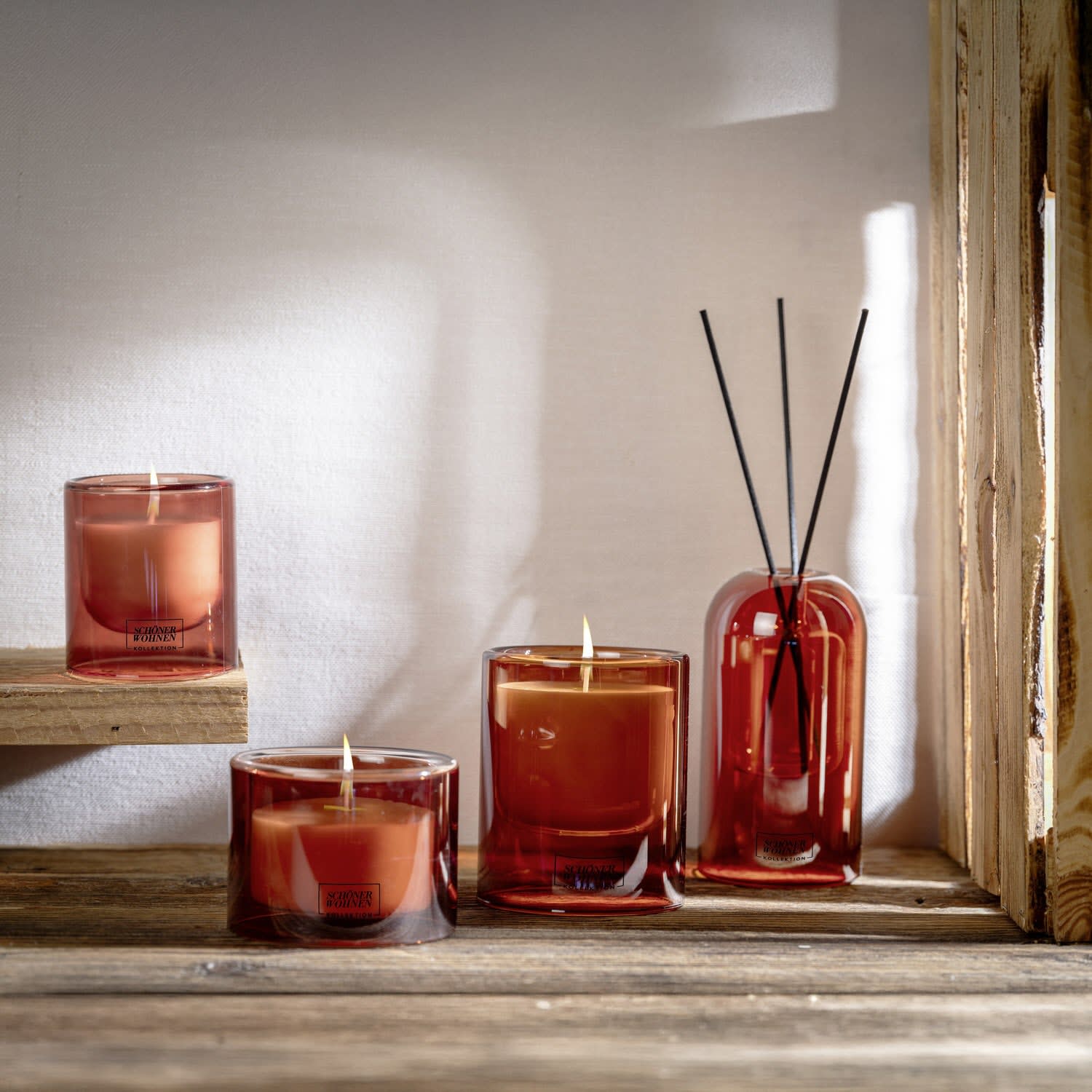 - Rotes Kerzen-Glas mit weißer Duftkerze