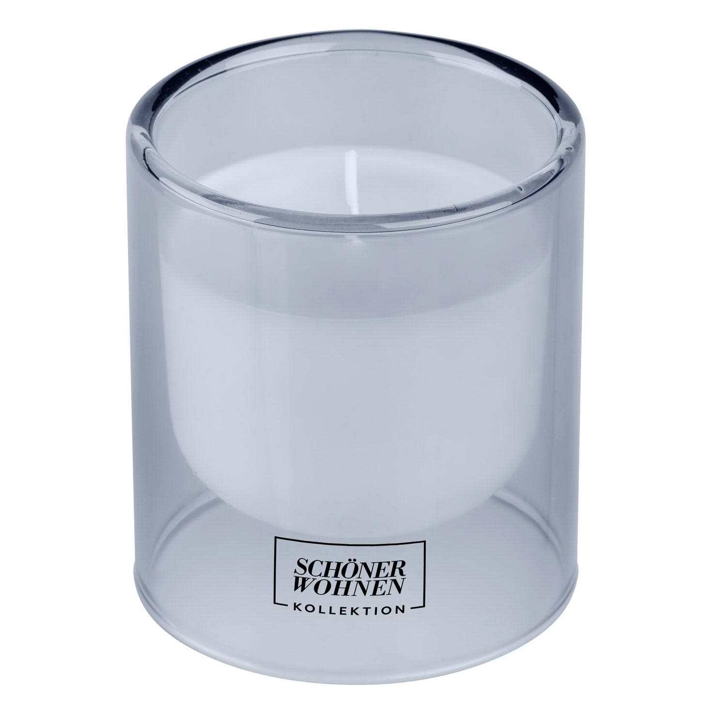 - 1 Duftkerze in doppelwandigem Glasbehältnis