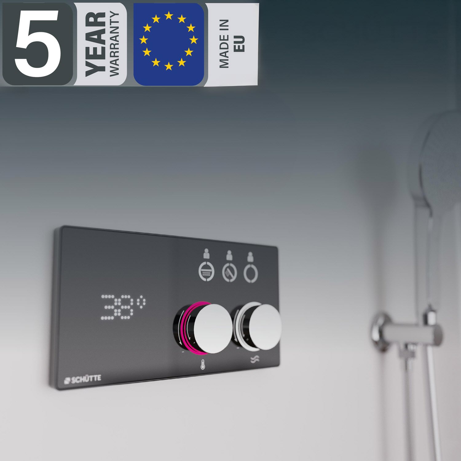 Dank Memory-Funktion lassen sich individuelle Duschprofile für bis zu drei Nutzer speichern. Die LED-Temperaturanzeige mit Farbverlauf visualisiert die Wassertemperatur in Echtzeit, während die Vorwärm-Funktion perfekt temperiertes Wasser auf Knopfdruck liefert.