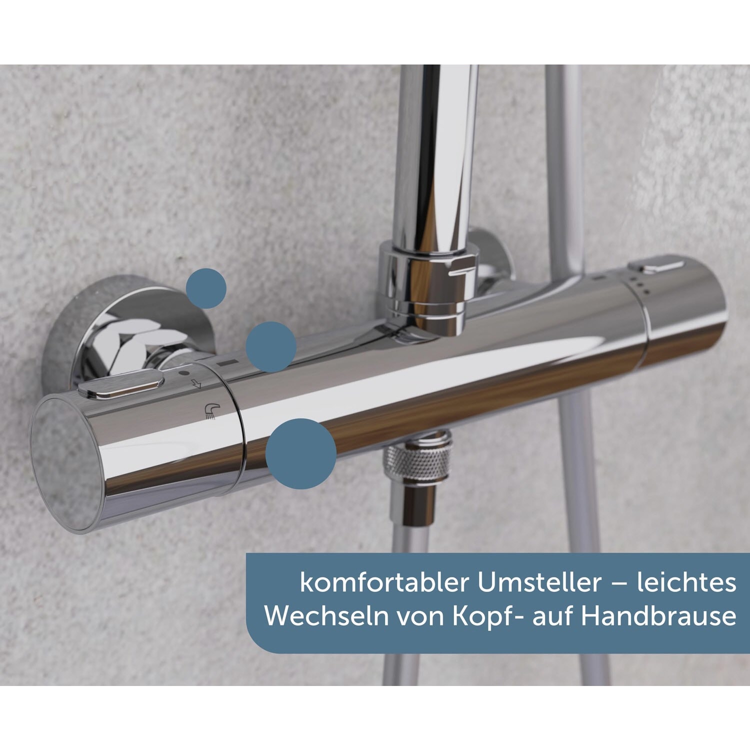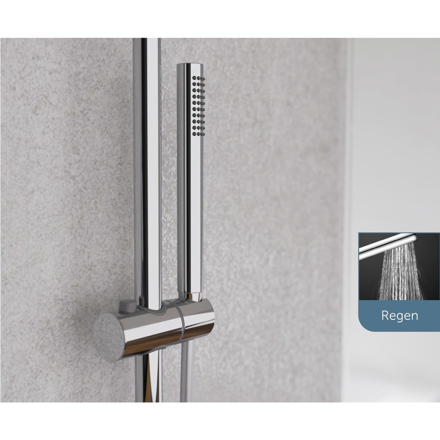 - inkl. Handbrausehalter (mit Druckknopf zum Verschieben am Steigrohr)