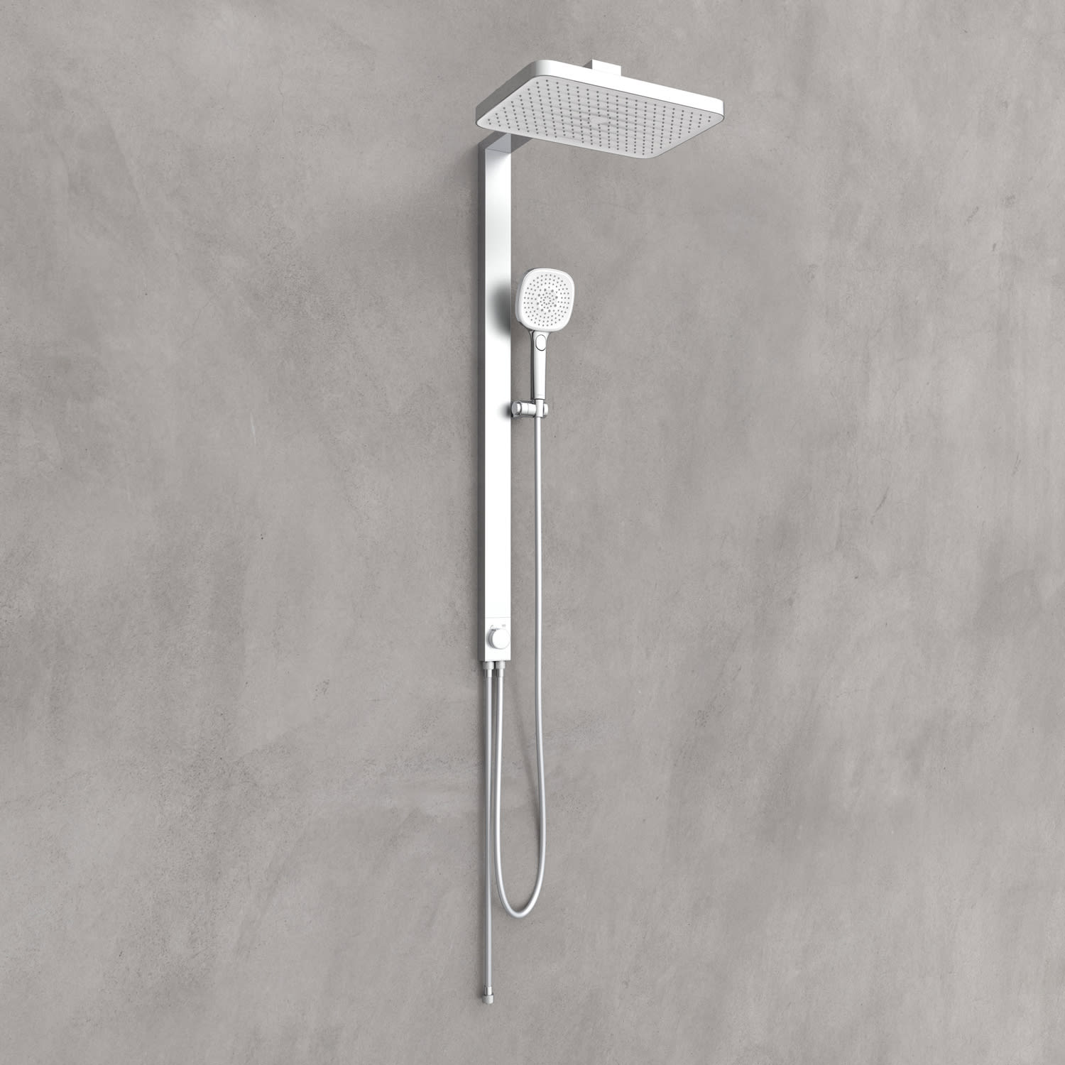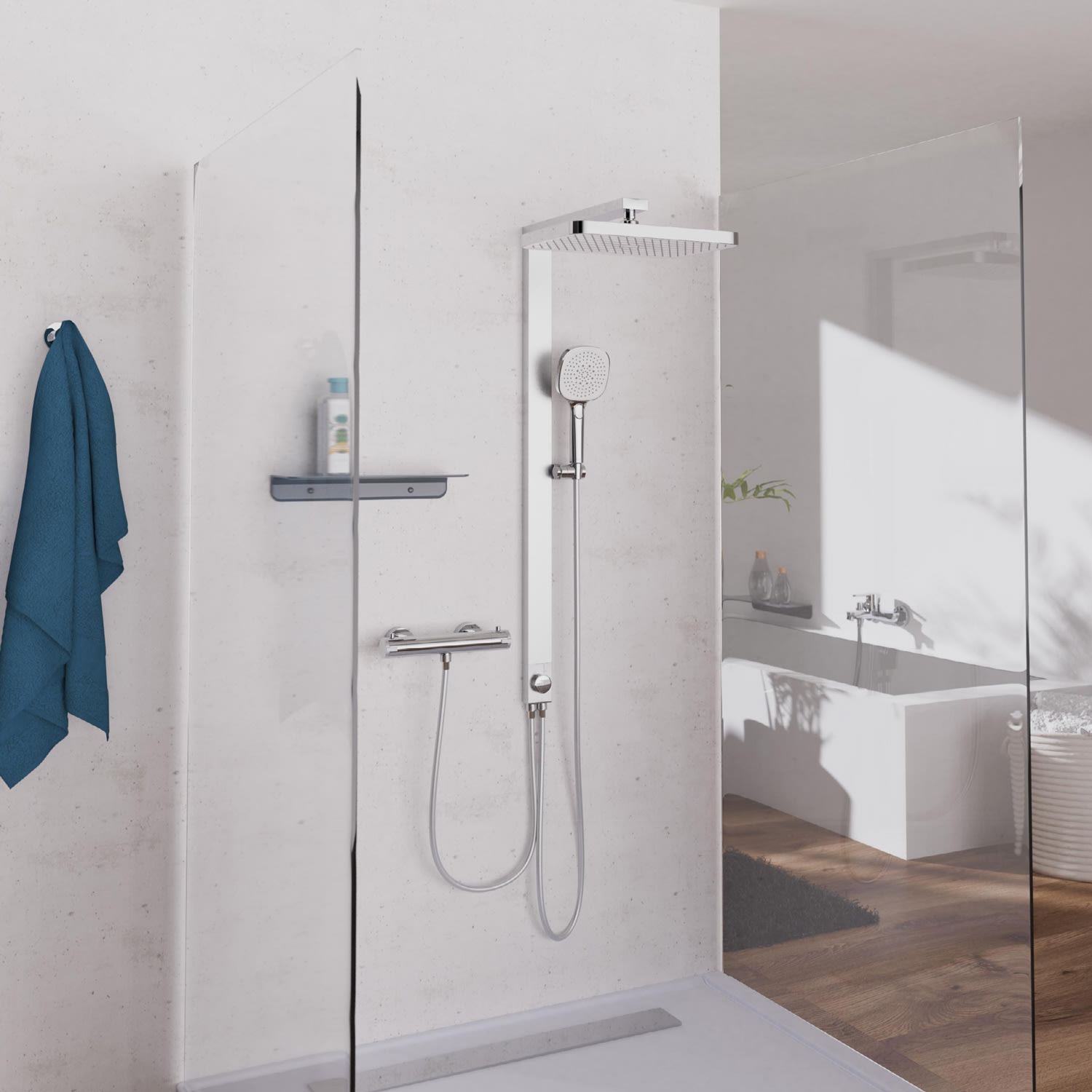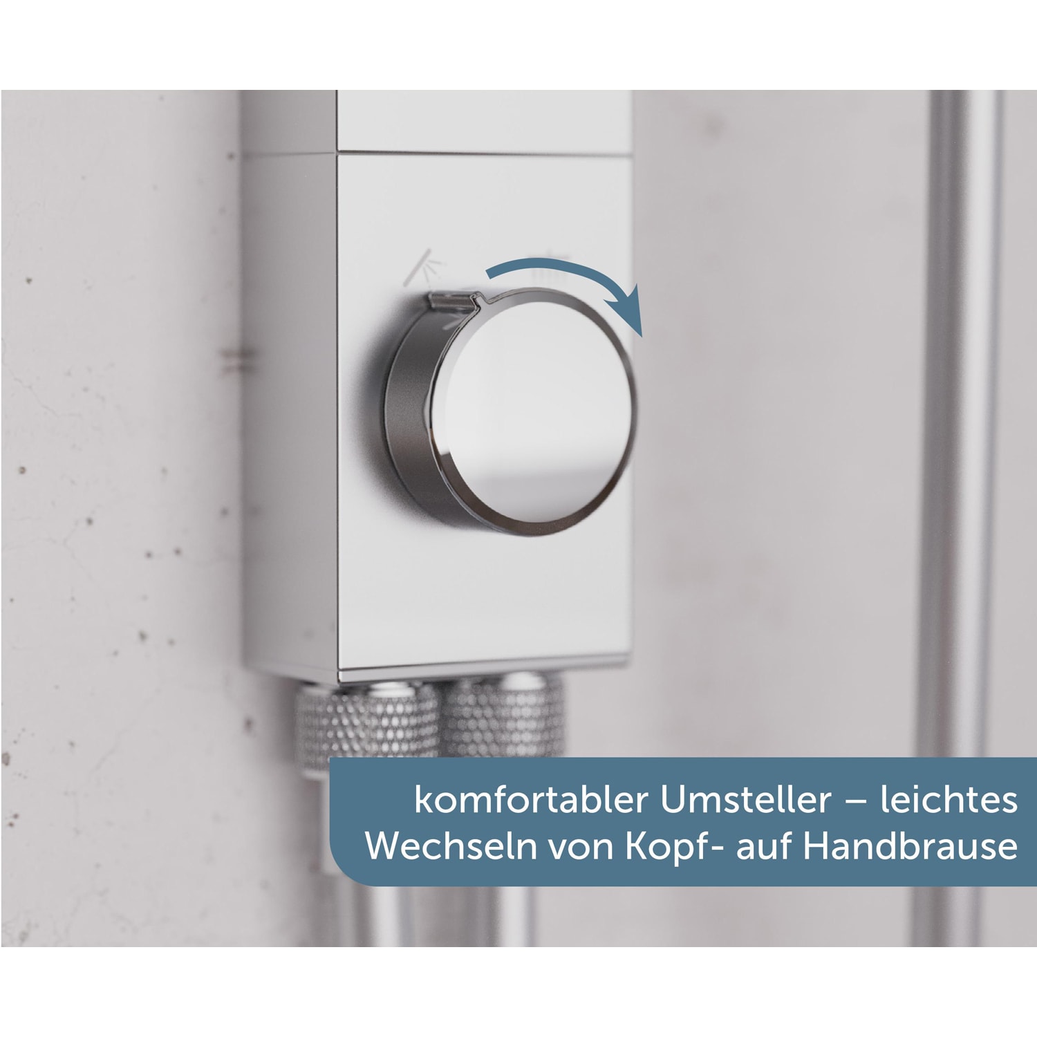 Mit dem integrierten Umsteller kann bequem zwischen Kopf- und Handbrause gewechselt werden. Je nach Duschtyp.