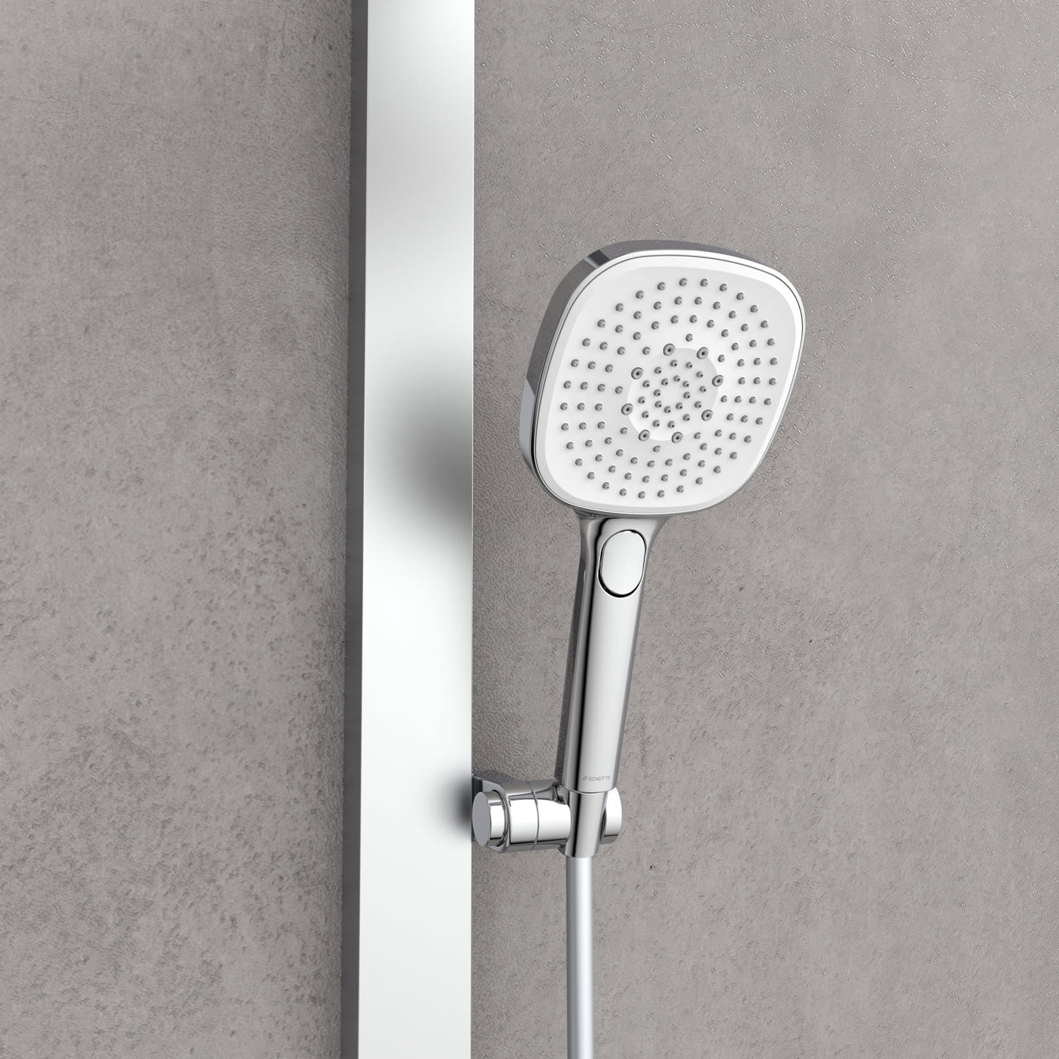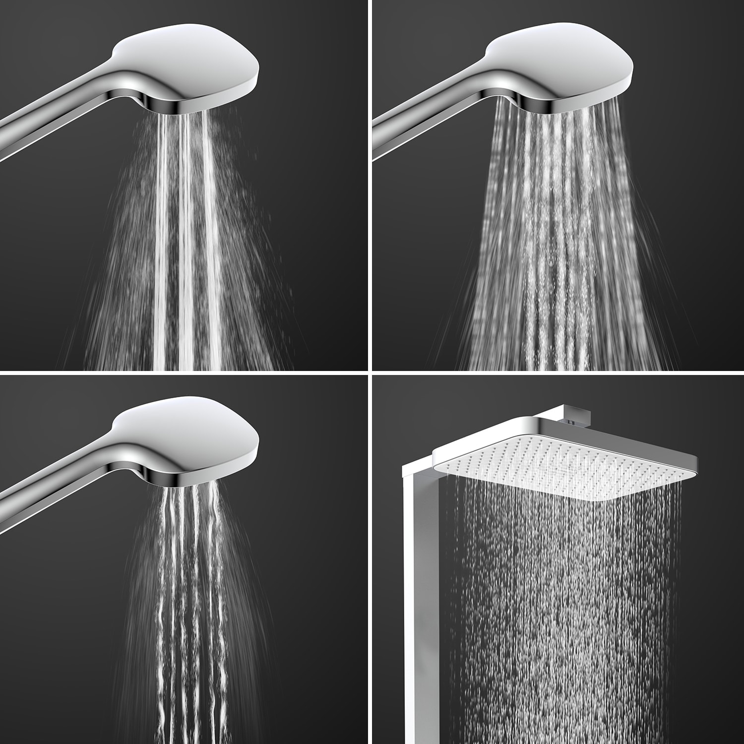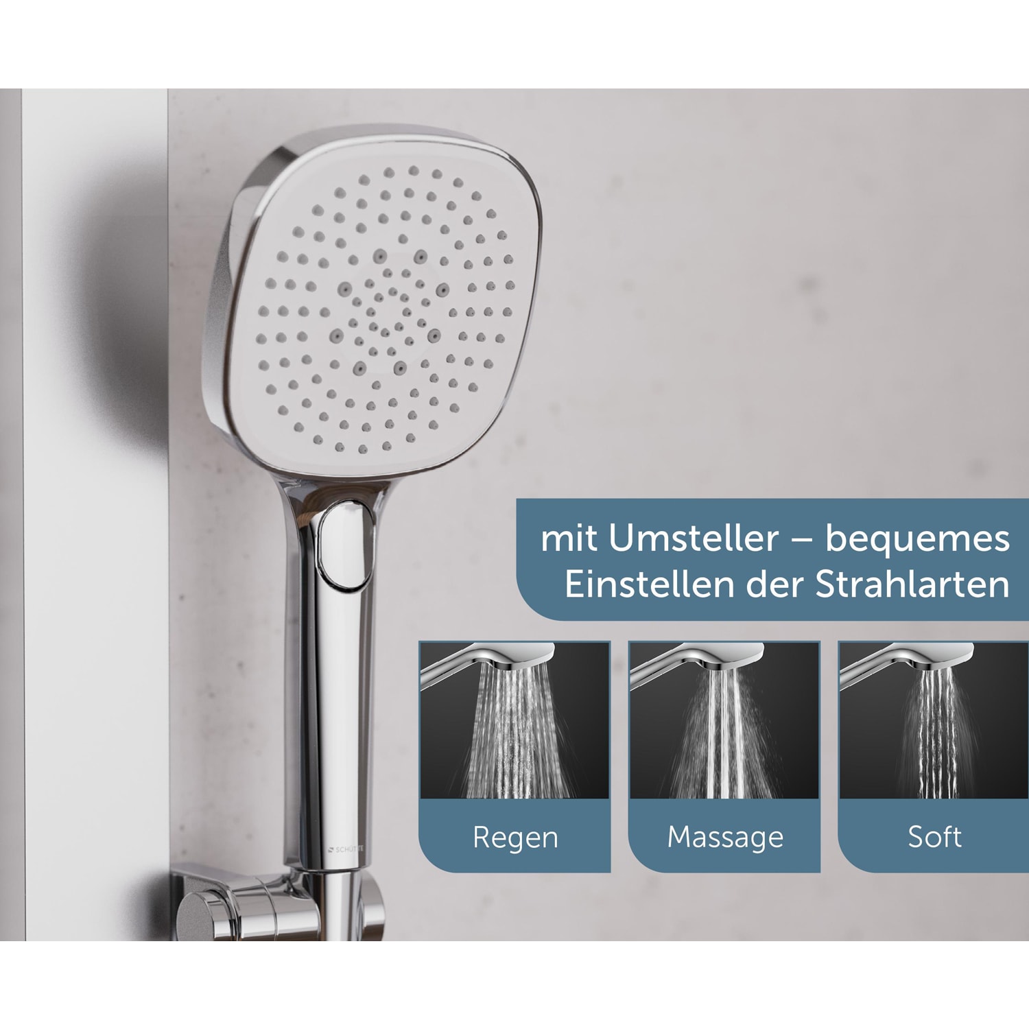 Die Wellness Handbrause verfügt über drei Strahlarten, individuell einstellbar je nach Duschtyp.