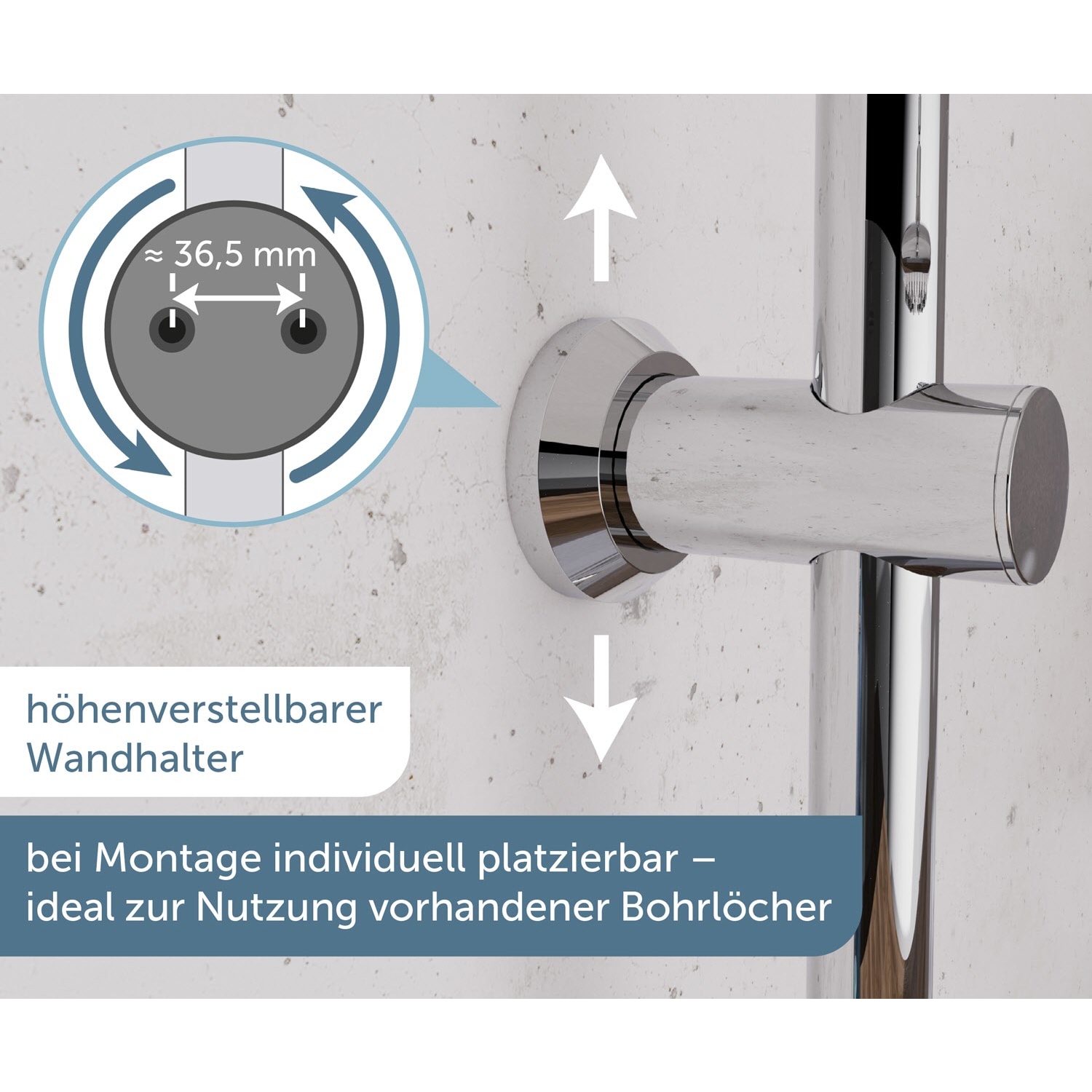 - höhenverstellbare Wandhalterung (ideal zur Nutzung vorhandener Bohrlöcher)