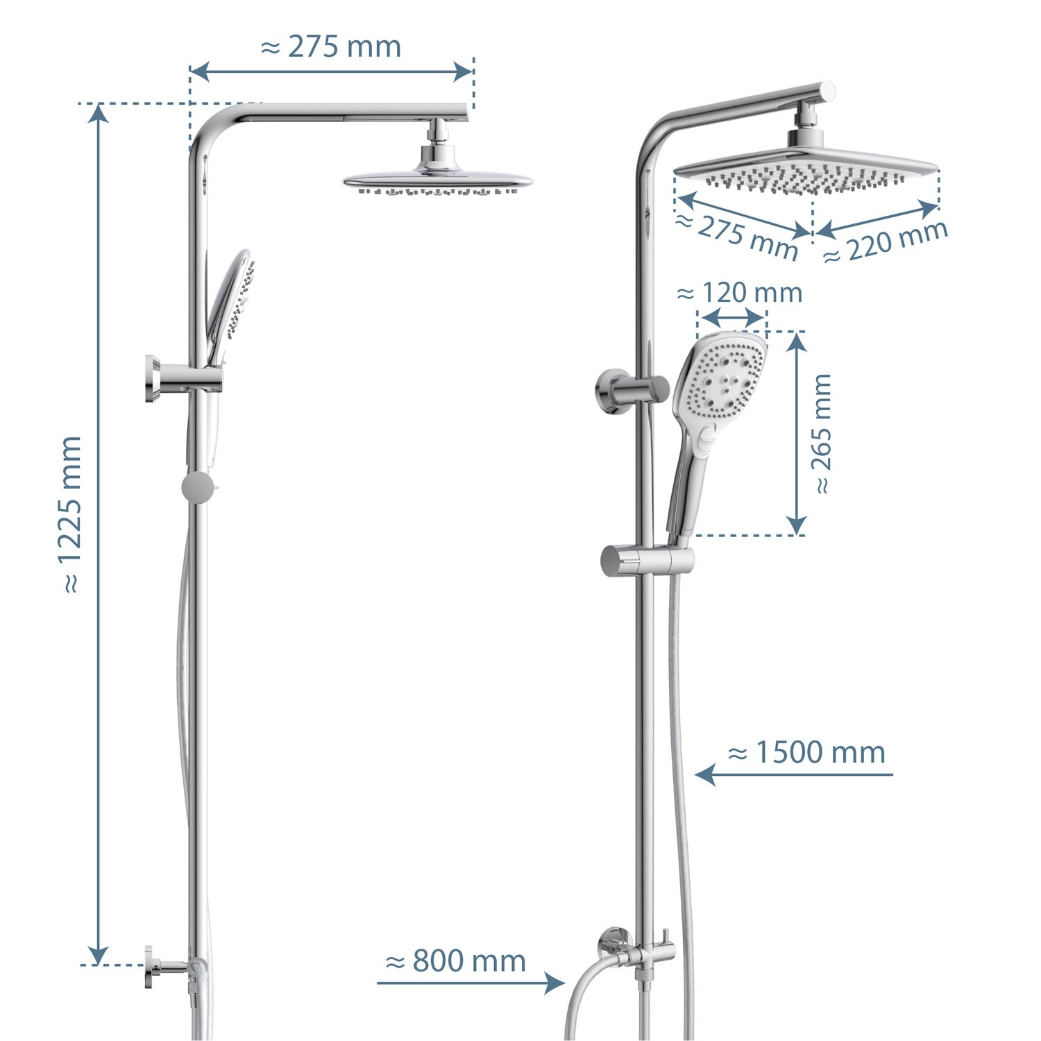 - mit Handbrausehalter (auch geeignet für alle handelsüblichen Handbrausen)