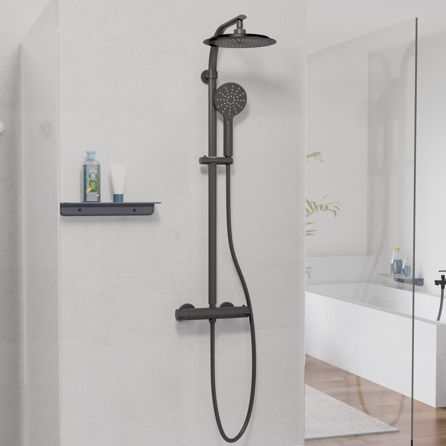 Schütte MADURA FRESH Regendusche mit Thermostat Duscharmatur, Handbrause mit 3 Funktionen