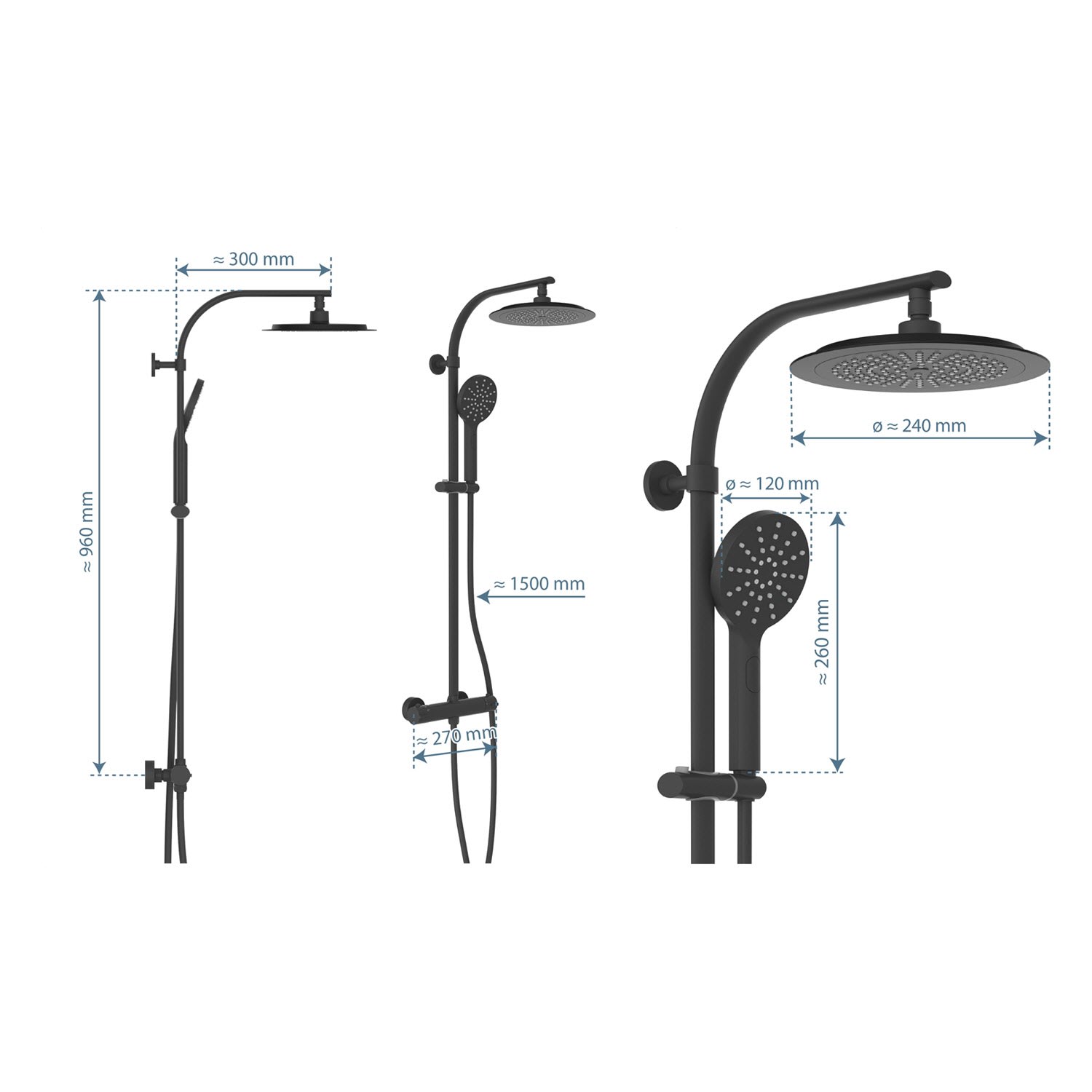 Kronenbach Lima 2.0 Black Duschsystem mit Thermostat, Brause Ø 30 cm