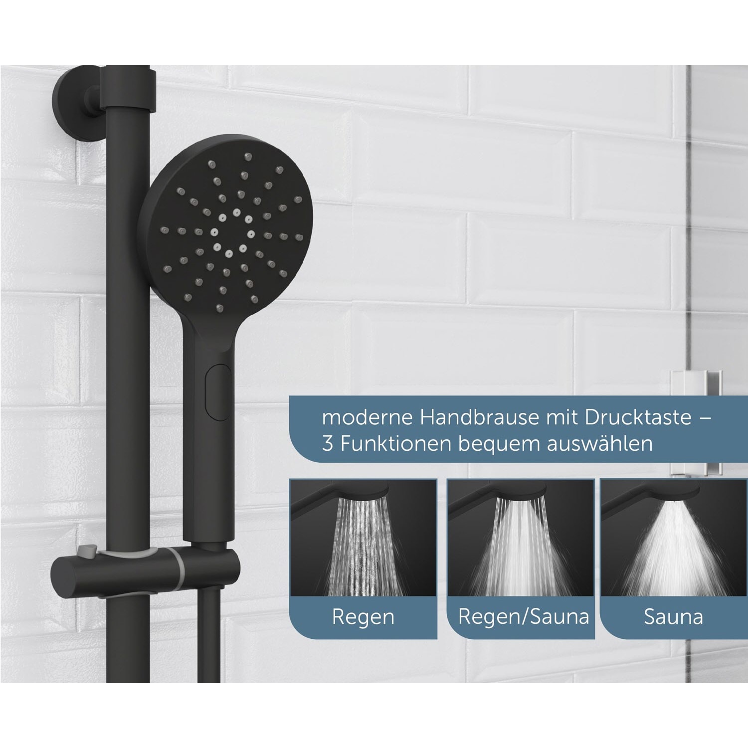 - Die Wellness Handbrause verfügt über drei Strahlarten, individuell einstellbar je nach Duschtyp.