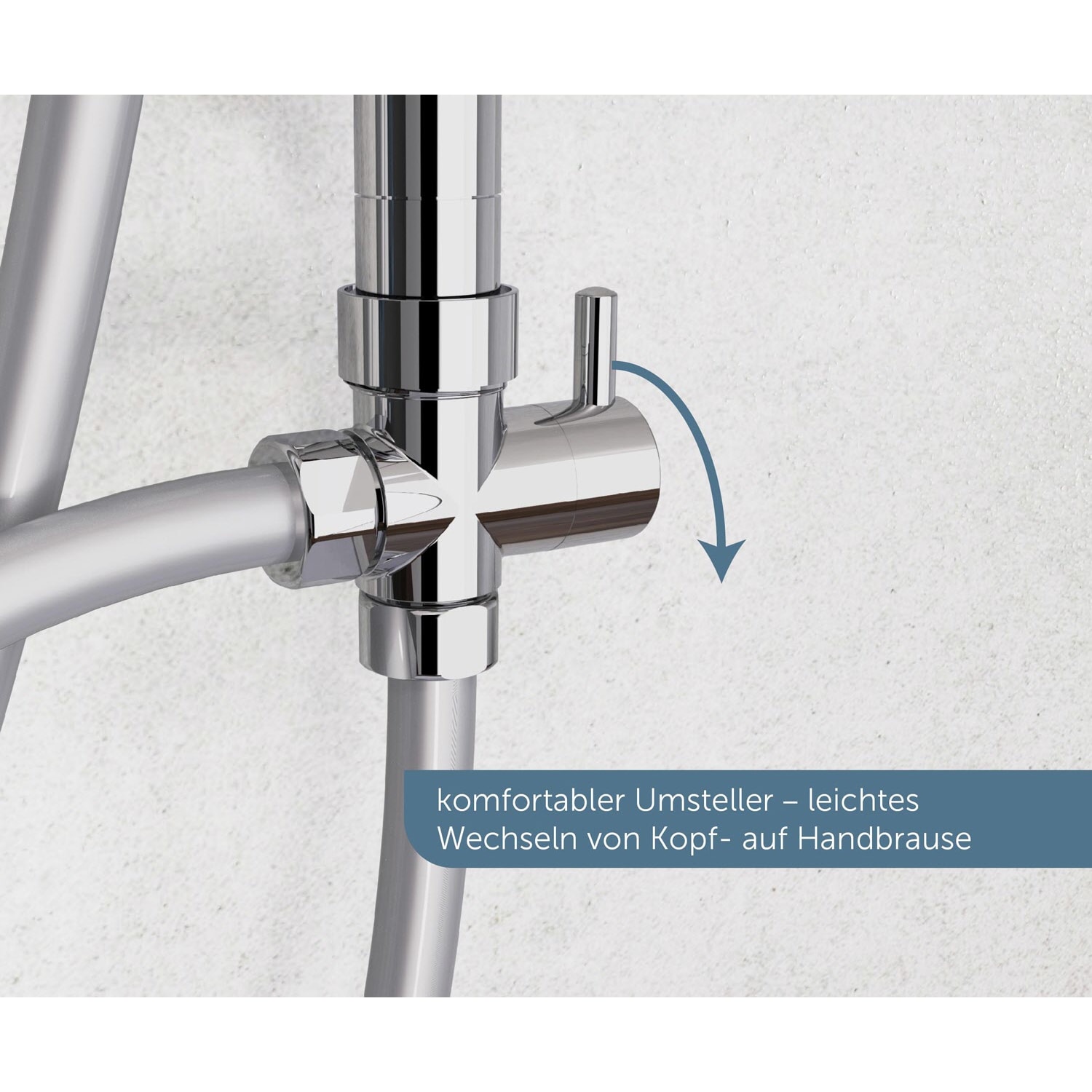 - Komfortabler Umsteller für den Wechsel zwischen Kopf- und Handbrause. Je nach Duschtyp.