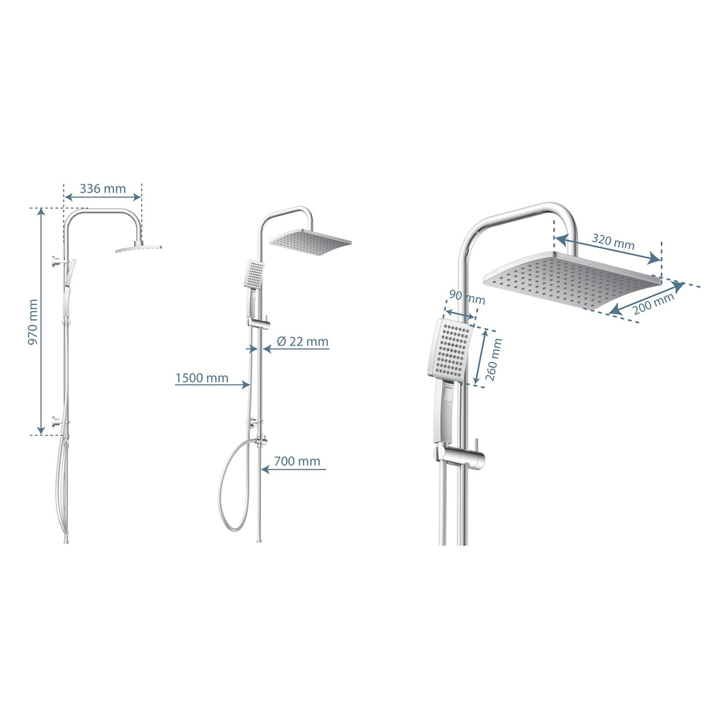 - Duschstange: Edelstahl verchromt, 970 mm