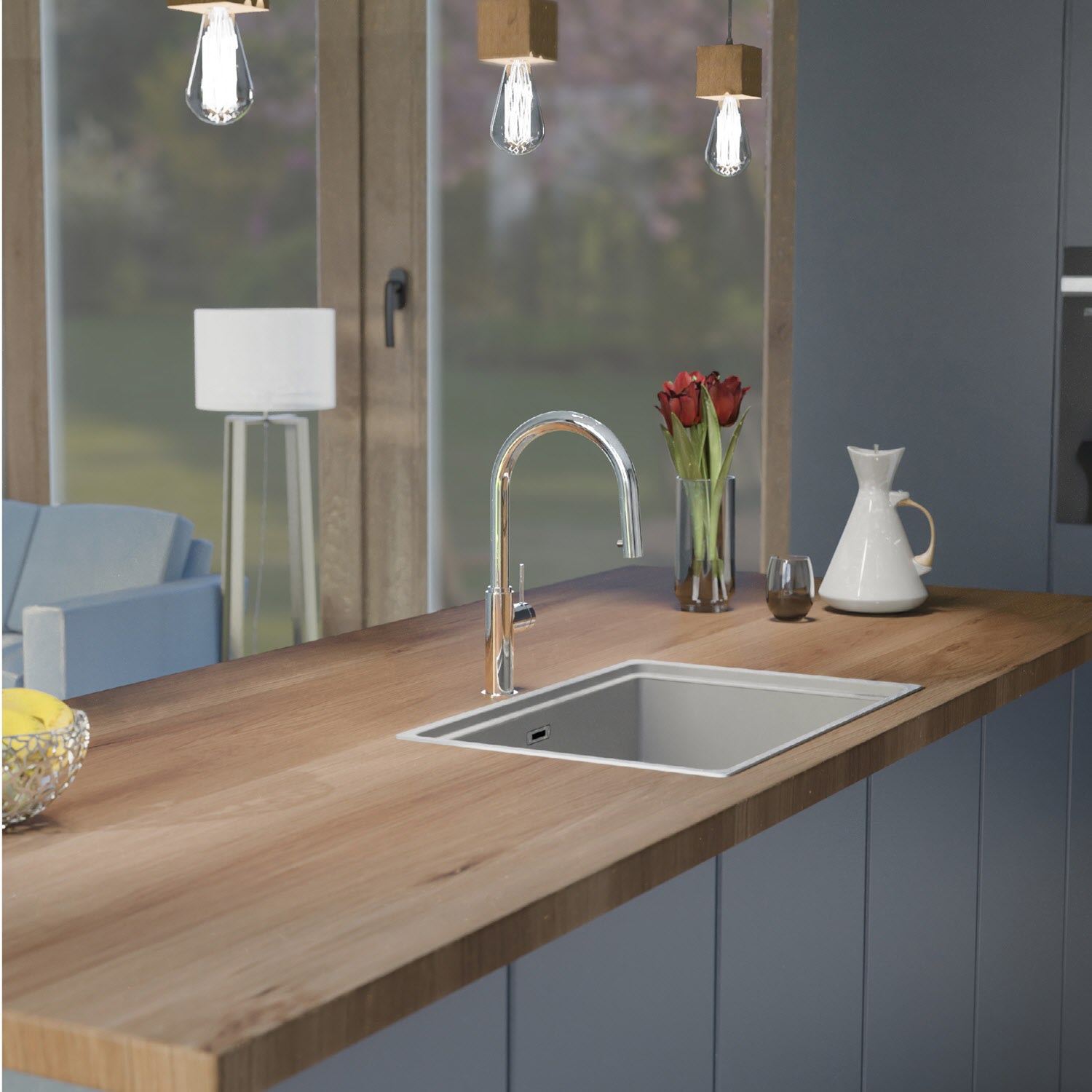 Die in der Küchenarmatur verbaute Mischdüse vom Markenhersteller steht für Langlebigkeit und ein homogenes Strahlbild.