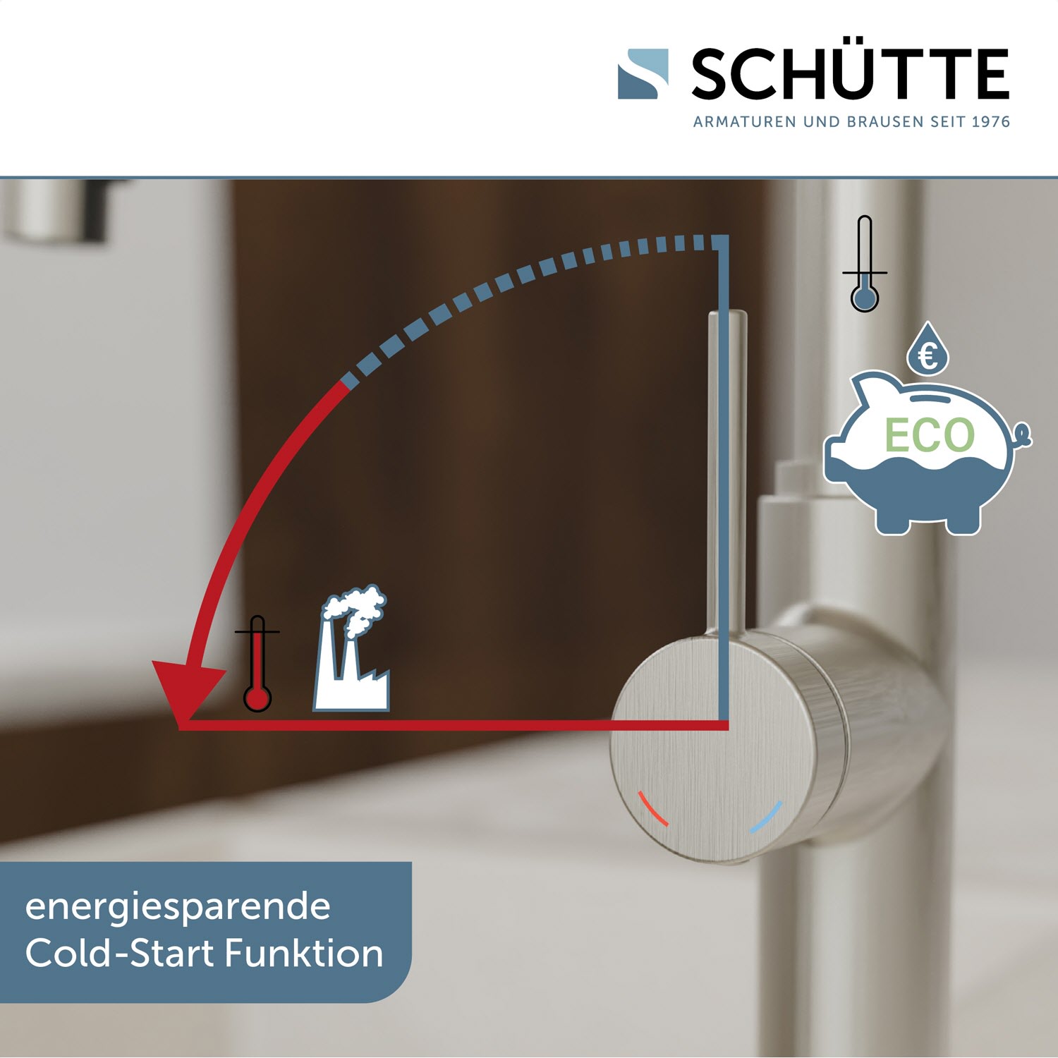 Ressourcenschonend handeln auch im Kleinen? Dann ist diese Einhebel-Mischbatterie mit Cold-Start Technik genau richtig, denn sie gewährt bei senkrechter Position des Bedienhebels nur den Zufluss von Kaltwasser. Oft völlig ausreichend.