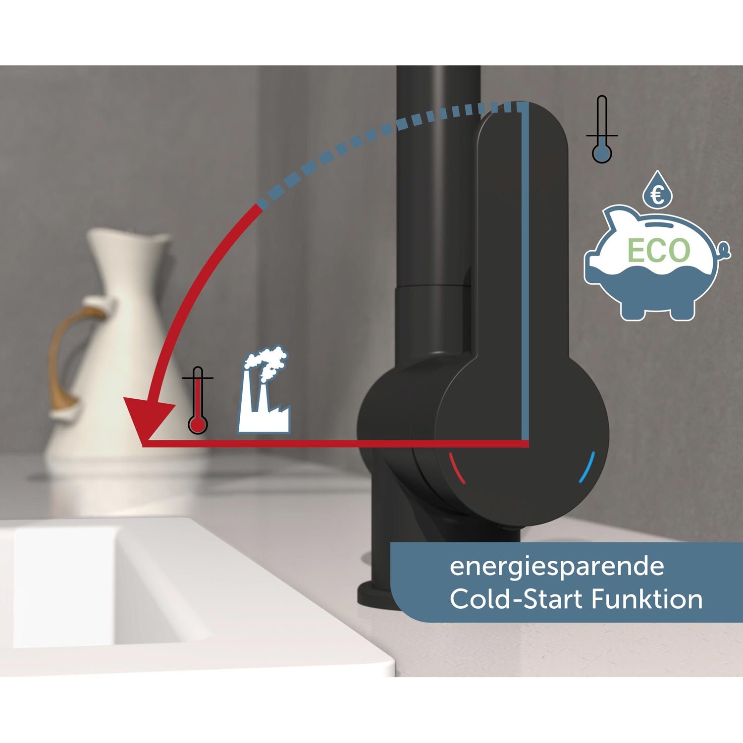 - Ressourcenschonend handeln auch im Kleinen? Dann ist diese Einhebel-Mischbatterie mit Cold-Start Technik genau richtig, denn sie gewährt bei senkrechter Position des Bedienhebels nur den Zufluss von Kaltwasser. Bei vielen Waschgängen völlig ausreichend.
