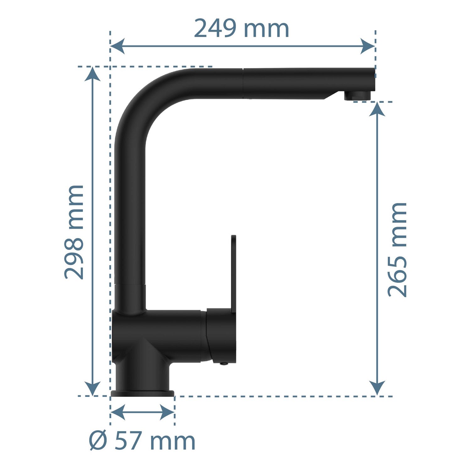 - Auslaufhöhe: ca. 265 mm