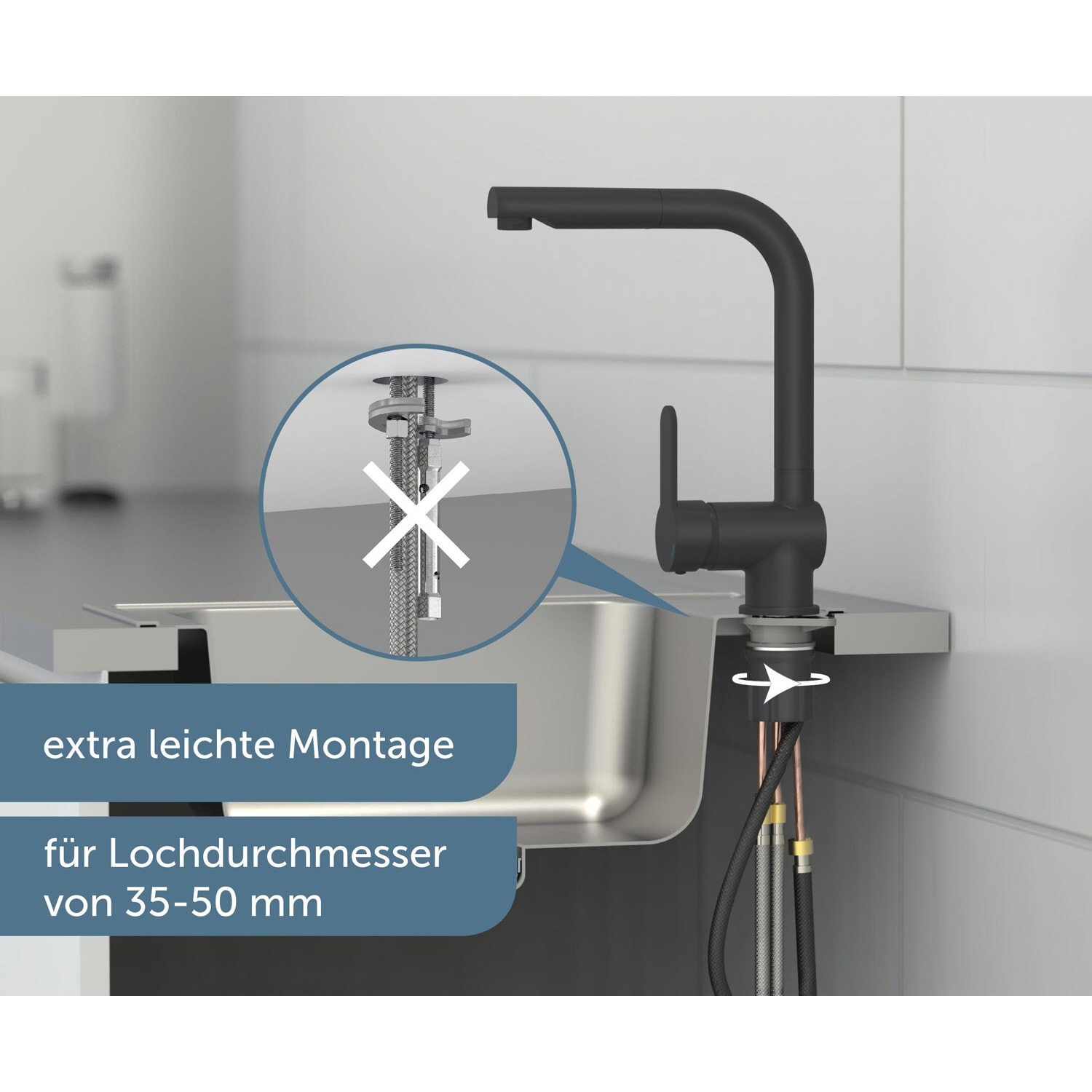 - Durch den ausziehbaren Brauseschlauch (150 cm) hat die Geschirrbrause einen großen Aktionsradius und erleichtert so die Arbeit in der Küche.