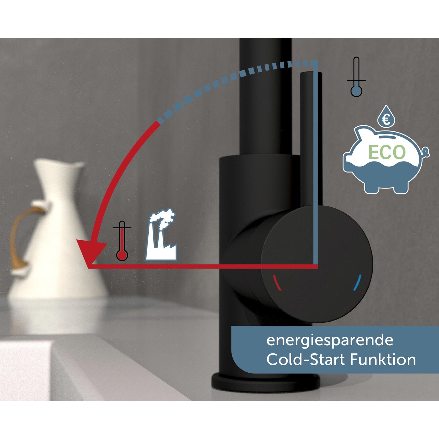 - Ressourcenschonend handeln auch im Kleinen? Dann ist diese Einhebel-Mischbatterie mit Cold-Start Technik genau richtig, denn sie gewährt bei senkrechter Position des Bedienhebels nur den Zufluss von Kaltwasser. Bei vielen Waschgängen völlig ausreichend.