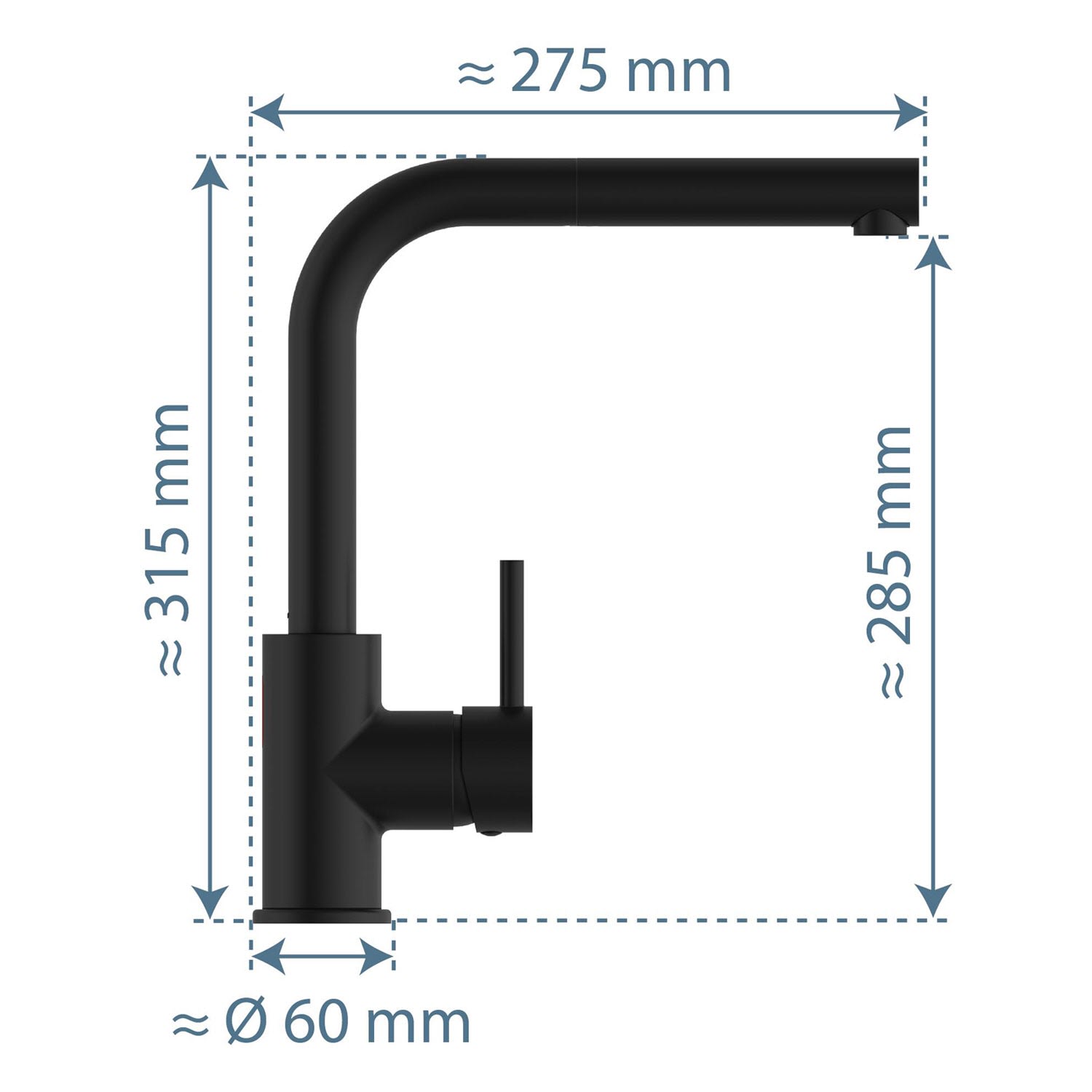 - Dank des herausziehbaren Auslaufs bietet der Wasserhahn flexible Einsatzmöglichkeiten in der Küche. Zum Beispiel zum Waschen von Obst und Gemüse oder aber für die Vorreinigung, bevor das Geschirr in den Geschirrspüler einsortiert wird.