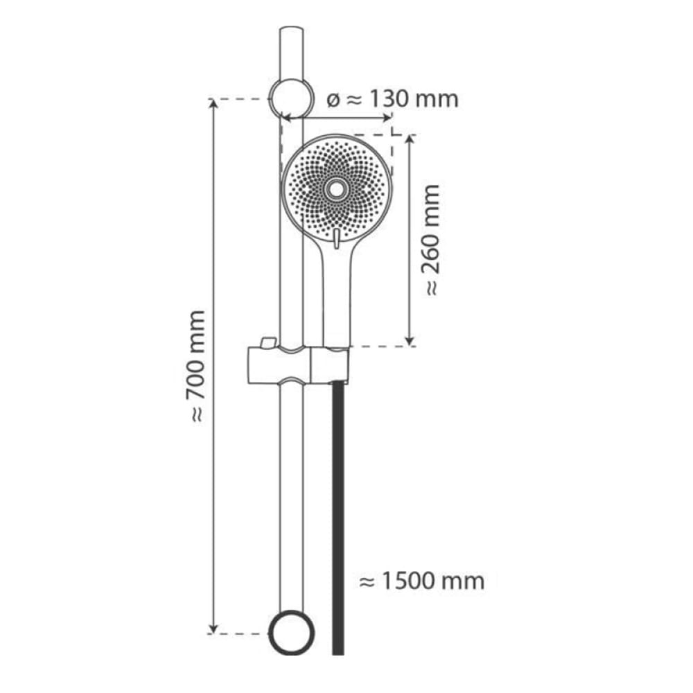 - Lieferumfang: Handbrause, Stangenset, Brauseschlauch, Wasserspareinsatz