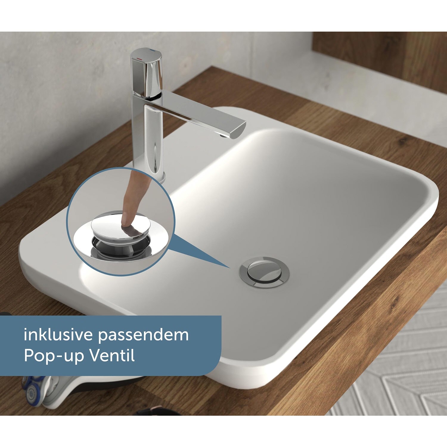 mit Push-Open-Ablaufventil und Überlauf