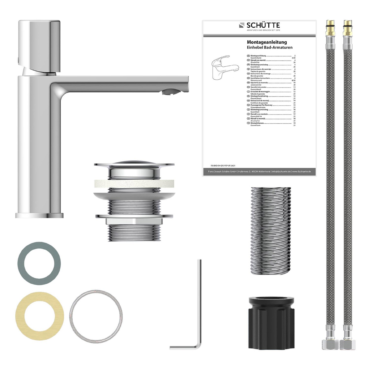 Schütte NEW YORK Waschtischarmatur mit Ablaufgarnitur und Pop Up Abflussstopfen