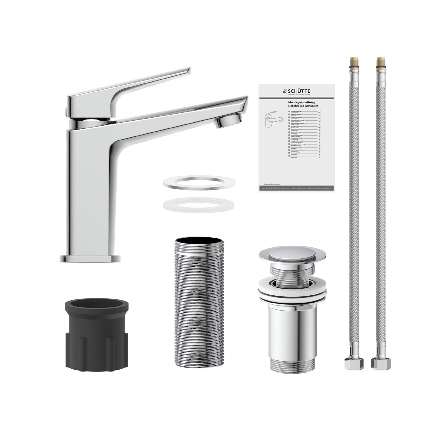 Schütte RAVEN Waschtischarmatur mit Ablaufgarnitur und Pop Up Abflussstopfen