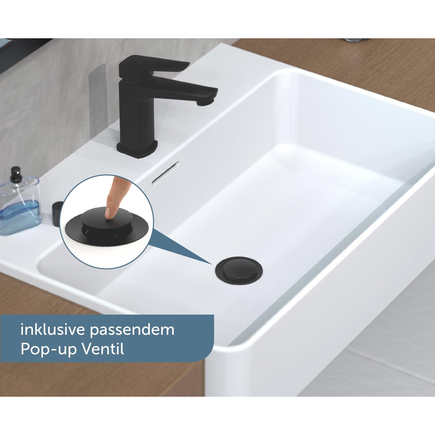 mit Push-Open-Ablaufventil und Überlauf