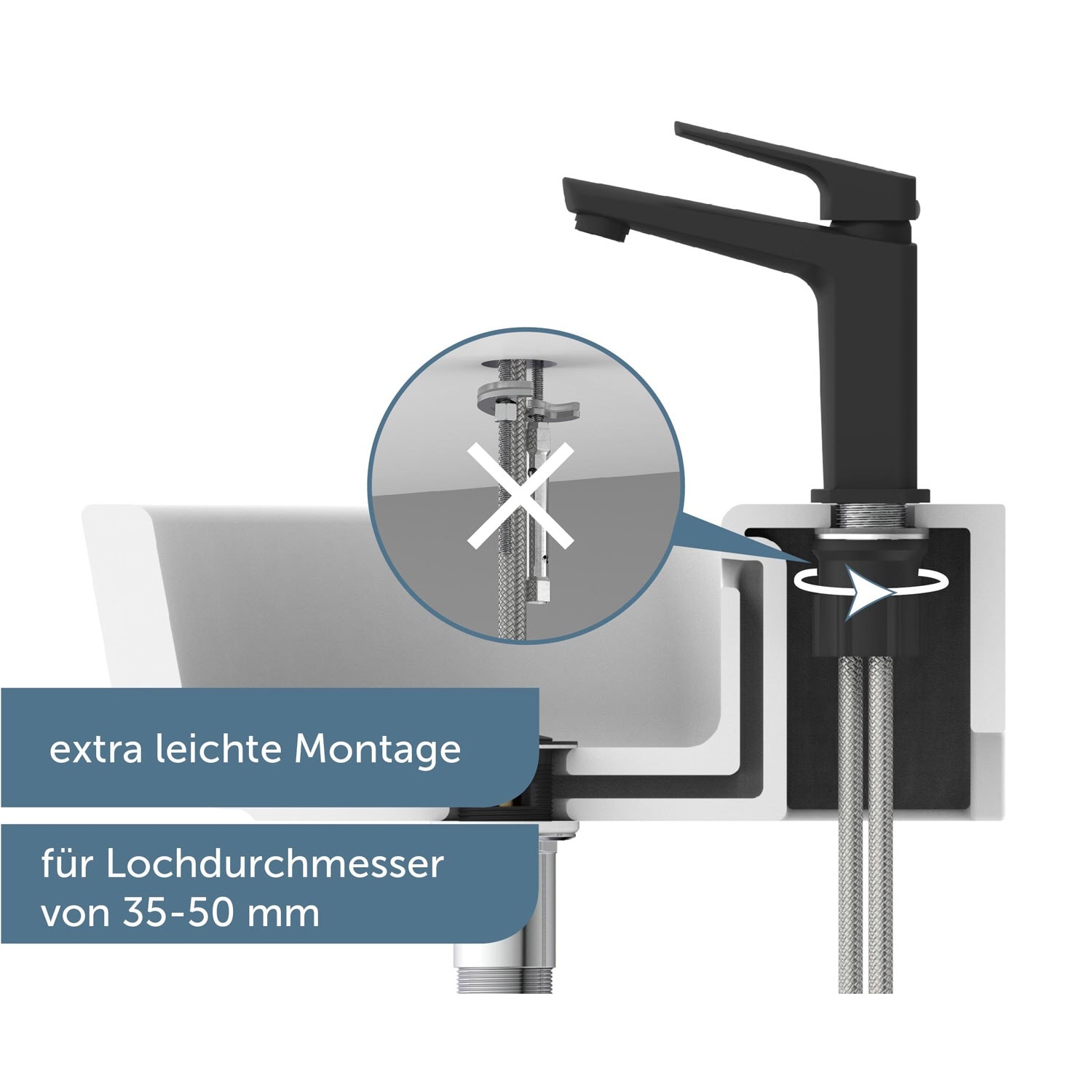 - Abgerundet wird die Badarmatur durch ihre einfache Montage. Die mitgelieferte Zentralverschraubung ist praktisch, selbsterklärend und kann ohne Fachkenntnisse schnell umgesetzt werden.