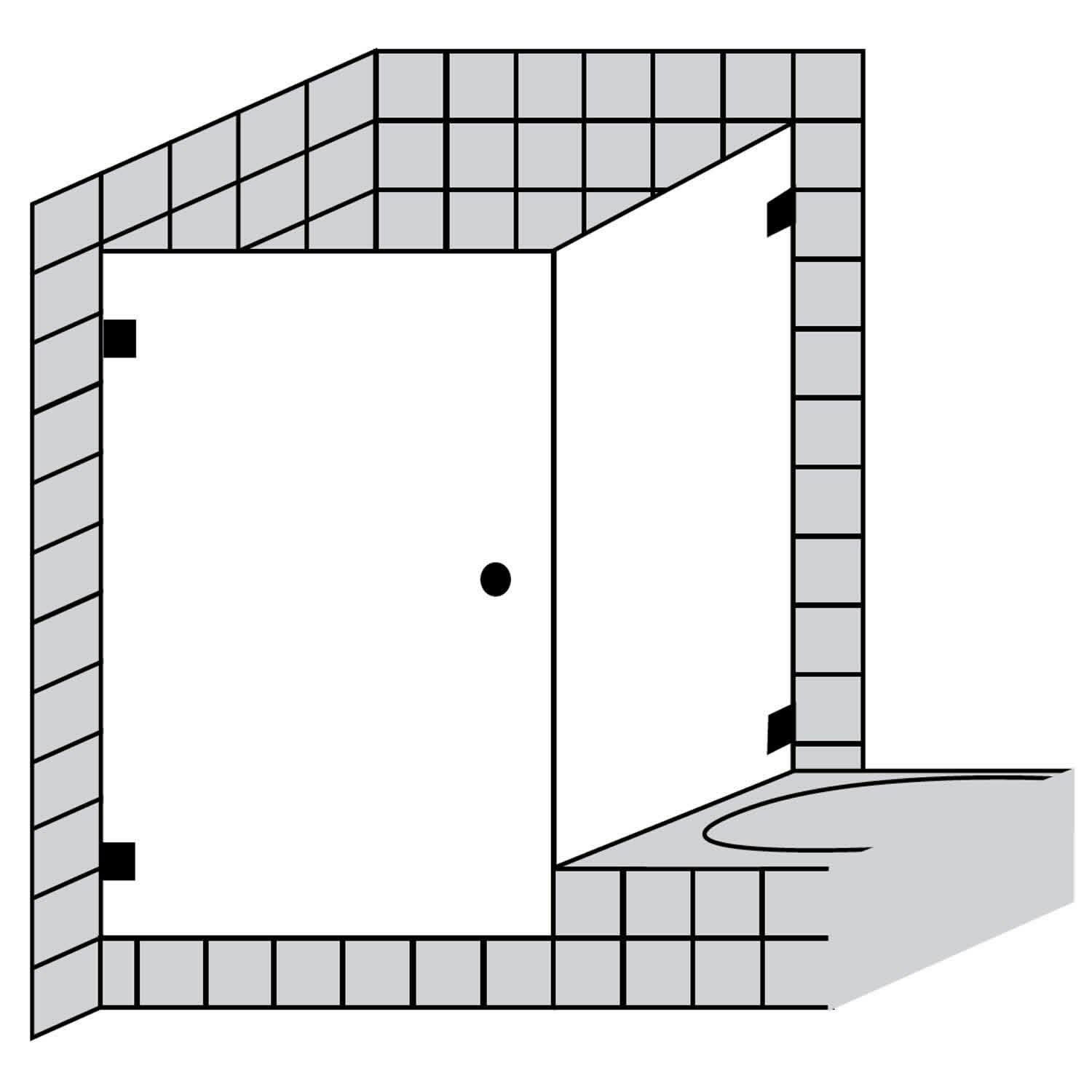 - 2-teilig, bestehend aus Drehtür und kurzer Seitenwand
