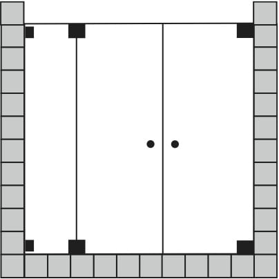 - bestehend aus 1 Festteil links sowie 2 Pendeltüren mittig und rechts (Anschlag 1x am Festteil und 1x wandseitig) oder