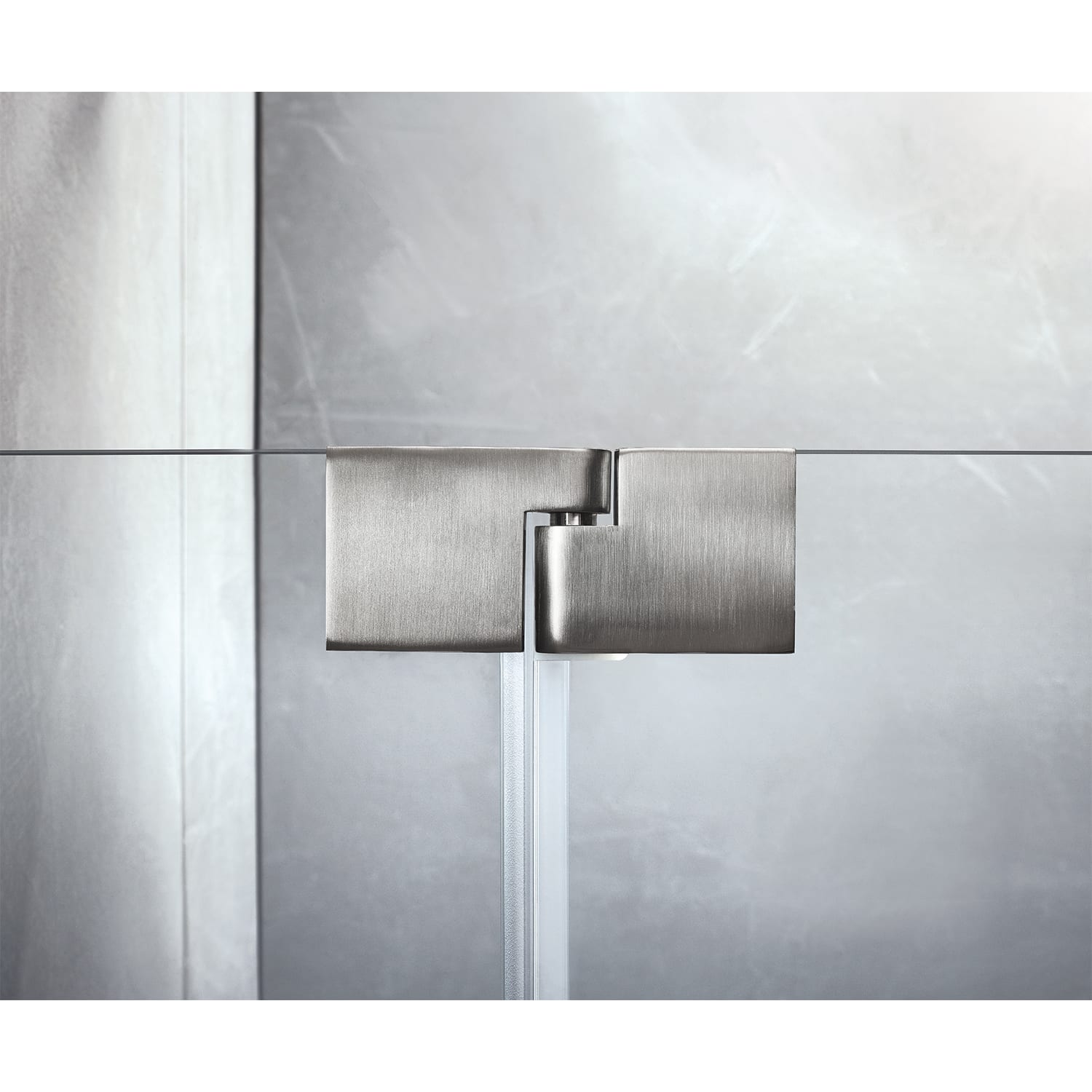 - durchgehende, vertikale Dichtung im Scharnierbereich (Glas/Wand) für optimalen Spritzschutz