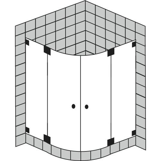 Diese 4-teilige Runddusche besteht aus zwei Festteilen und zwei Pendeltüren. Sie eignet sich für Duschwannen mit einem Radius von 50 cm.