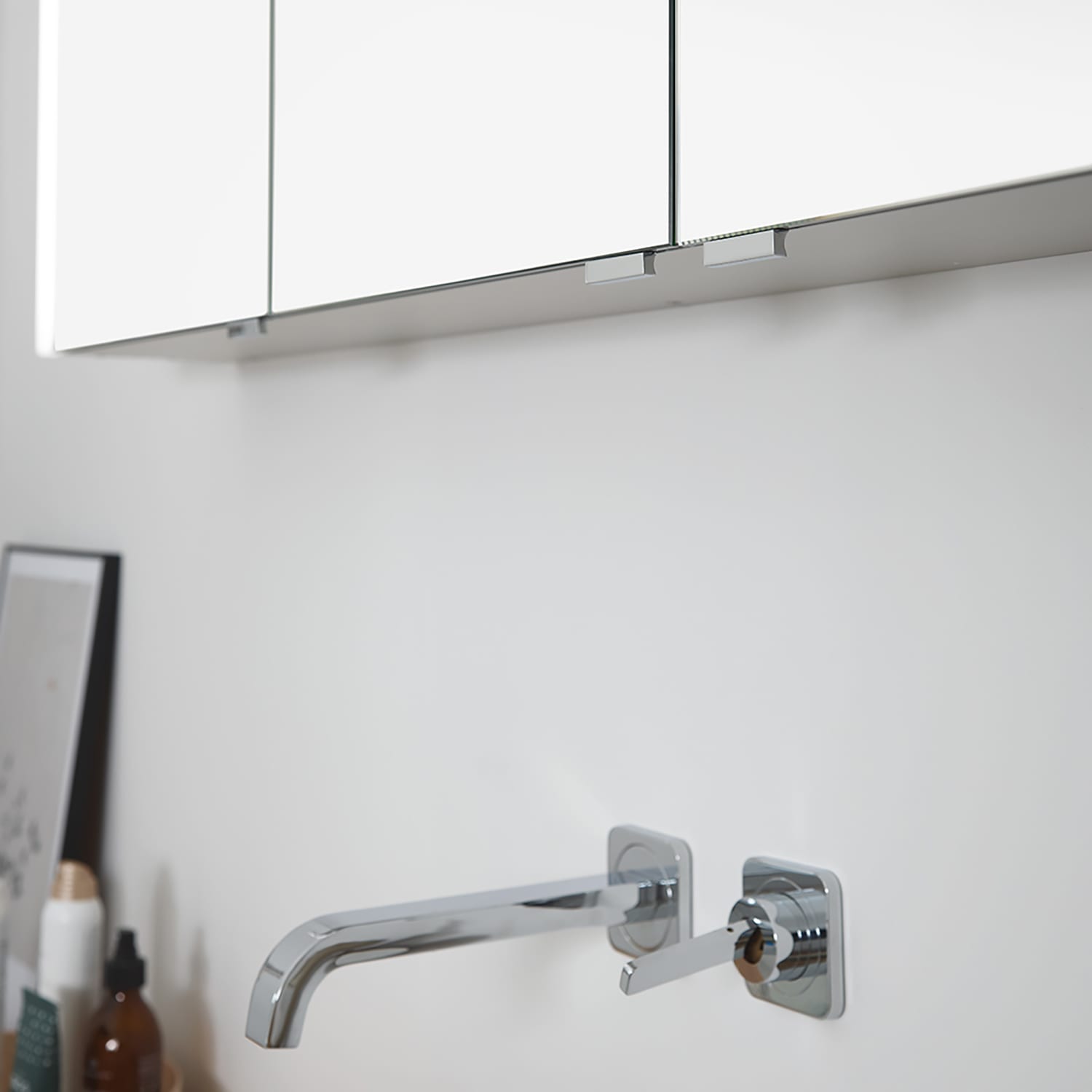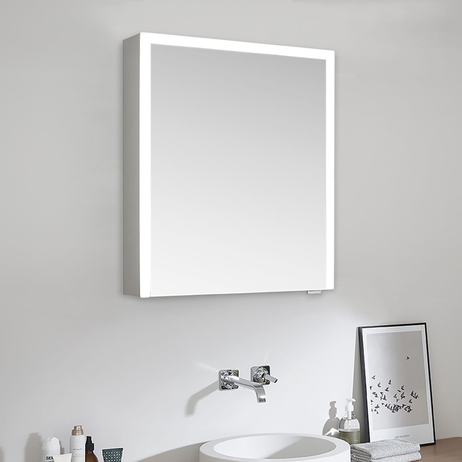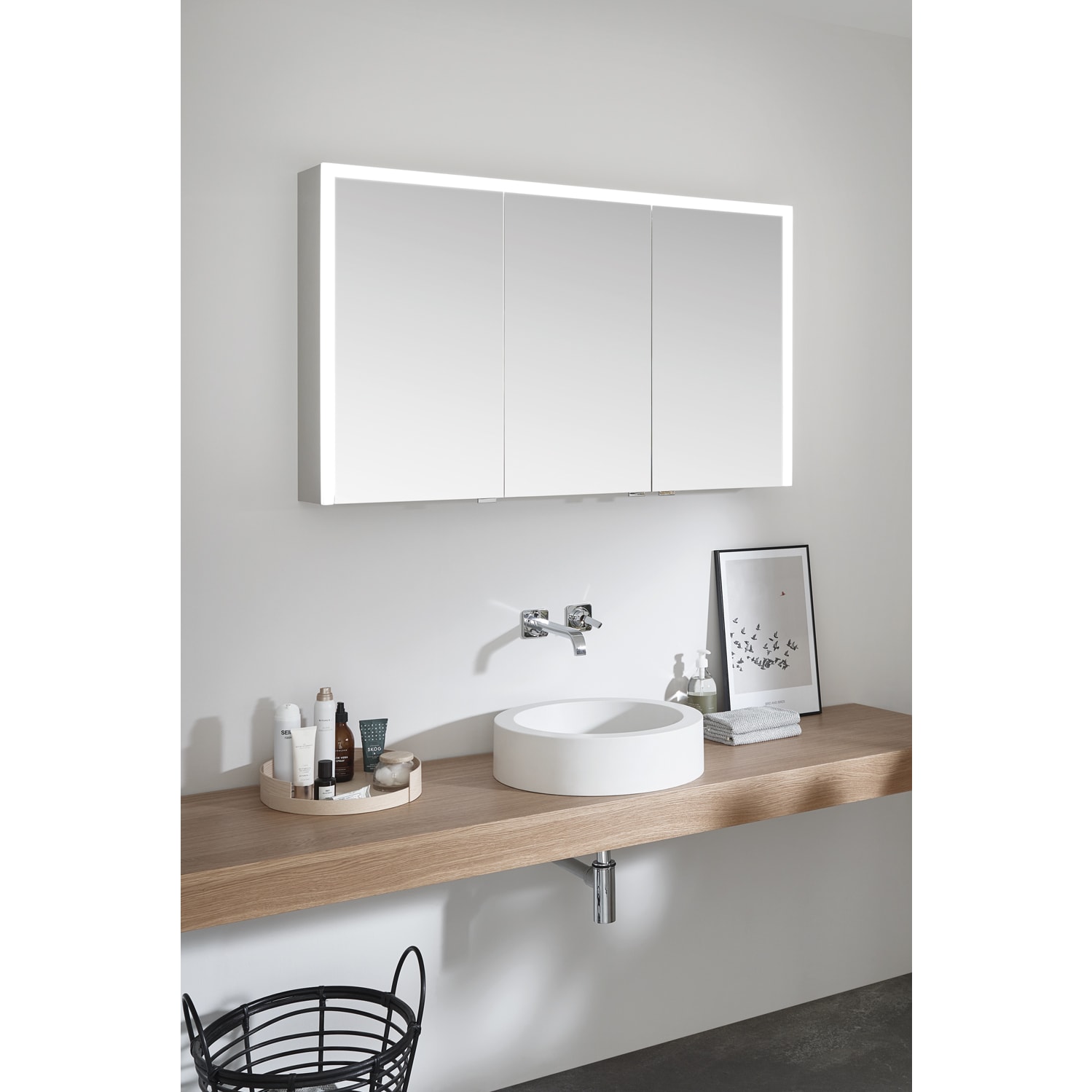 - Aluminium Spiegelschrank-Konzept mit integrierter dreiseitig umlaufender LED-Beleuchtung (2240 Lumen), je Lichtelement 10,5 Watt