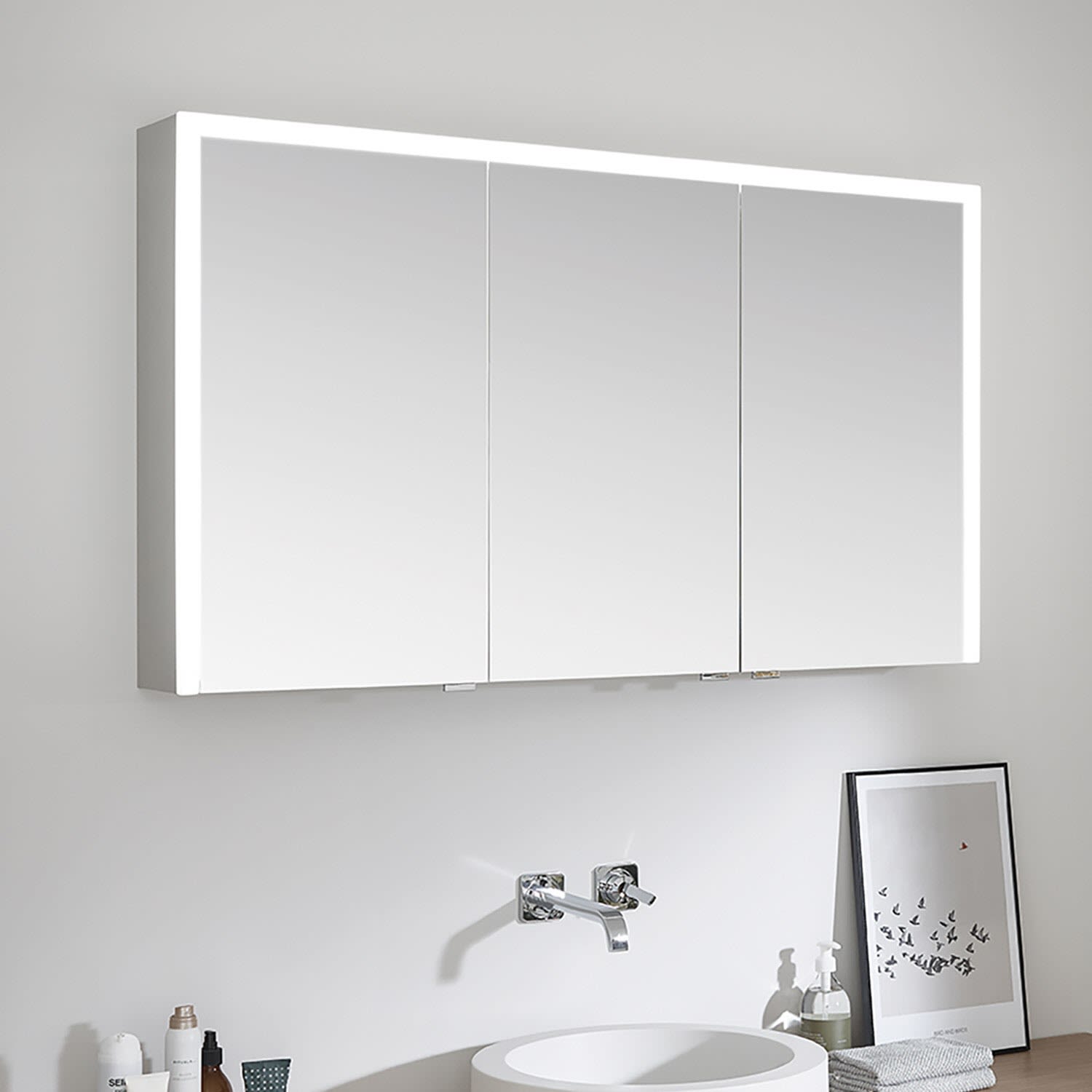 - Aluminium Spiegelschrank-Konzept mit integrierter dreiseitig umlaufender LED-Beleuchtung (2240 Lumen), je Lichtelement 10,5 Watt