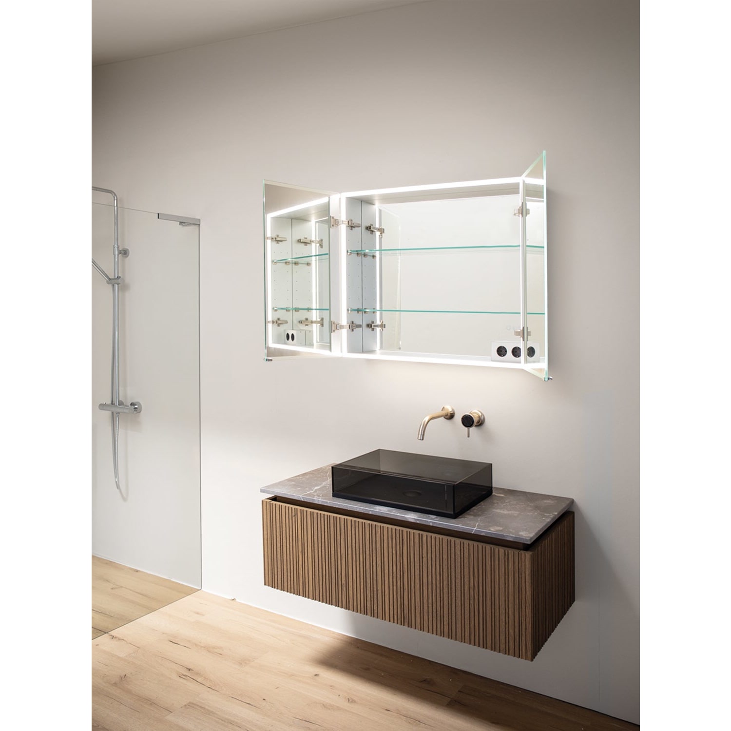 - hochwertige Kristall-Doppelspiegeltür mit sandgestrahltem Rahmen ohne Fuge