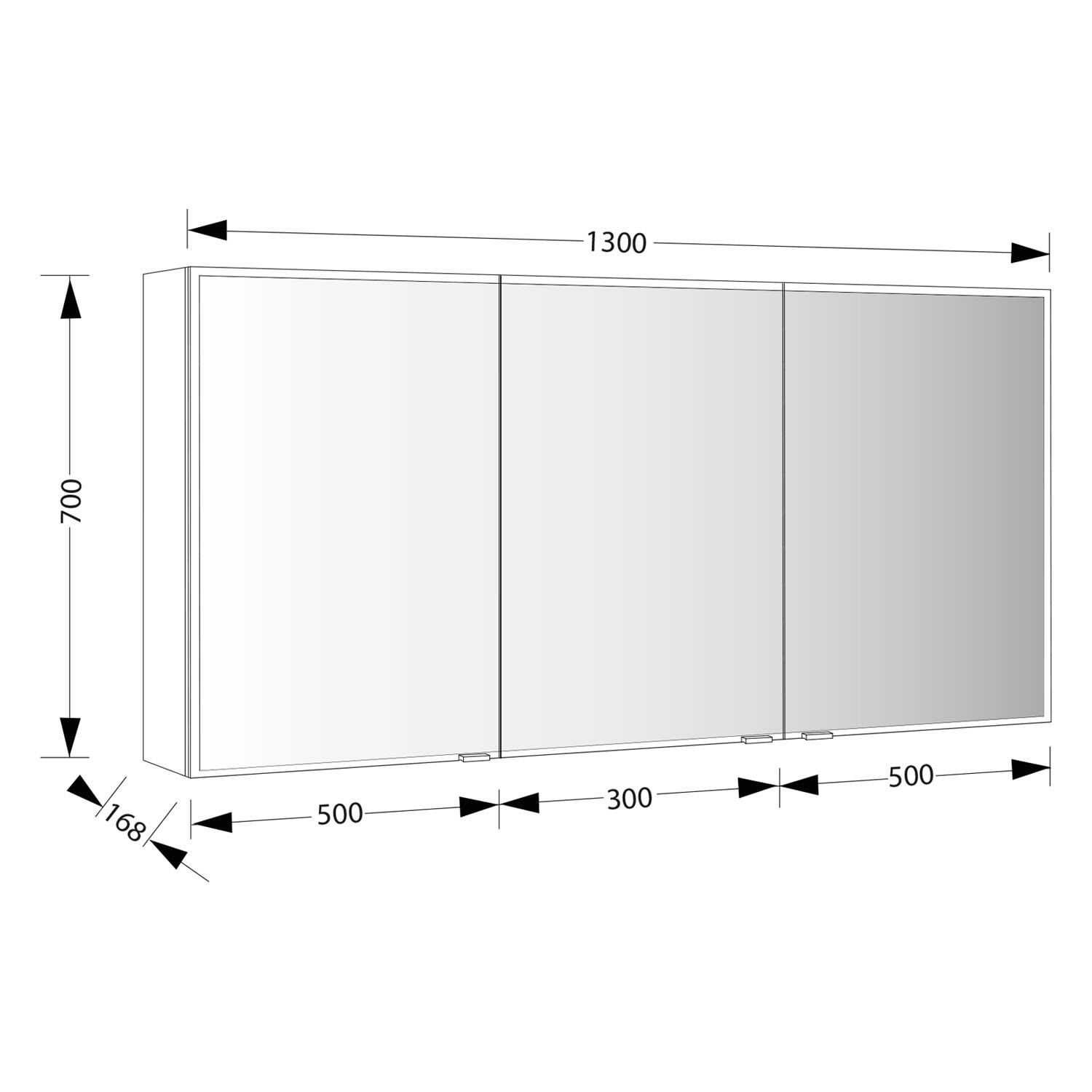Sprinz Pure-Line Spiegelschrank Aufputz mit 3 Türen 130 cm