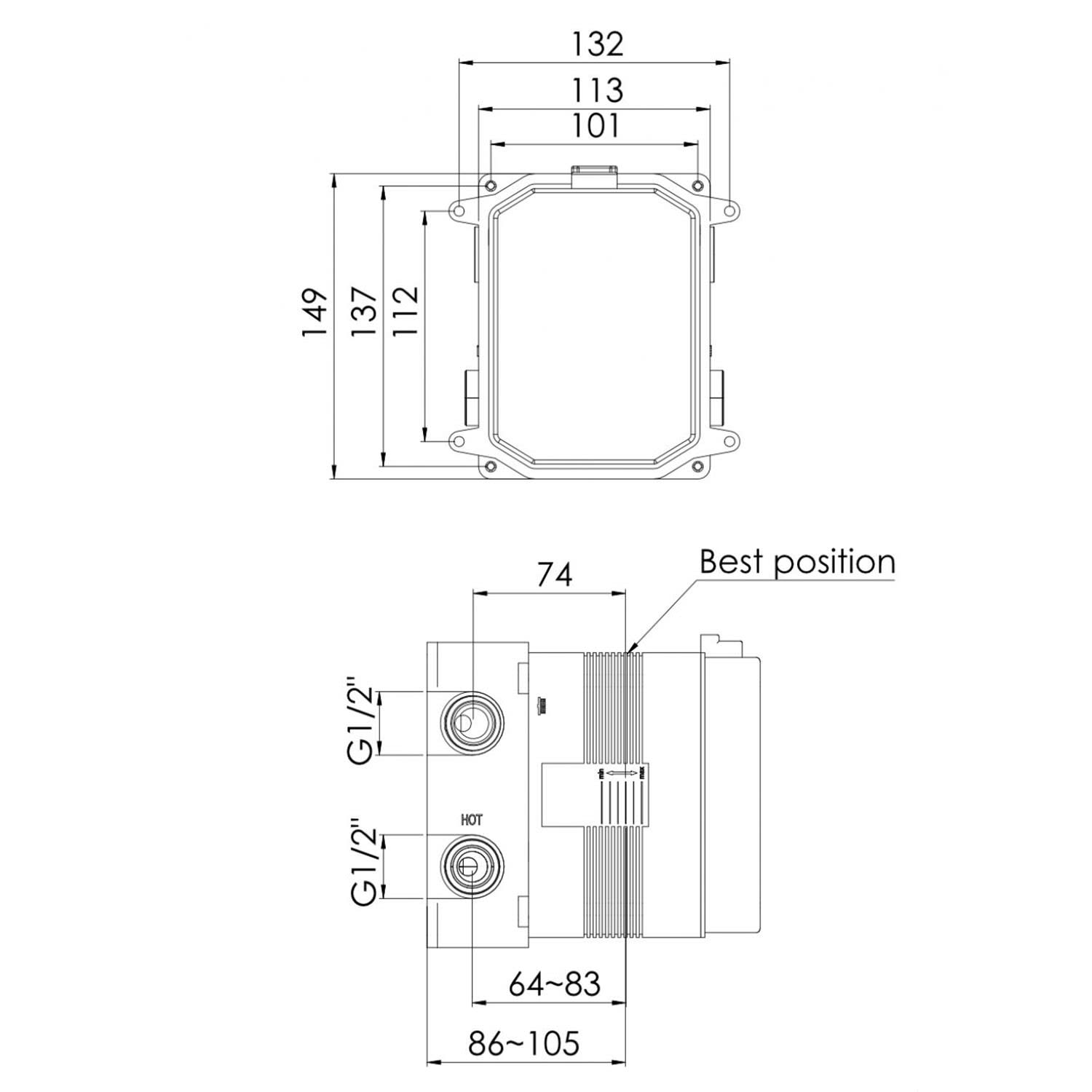 Steinberg Unterputz Einbaukörper 1/2" mit pushtronic Bedienkomfort für 2 Verbraucher
