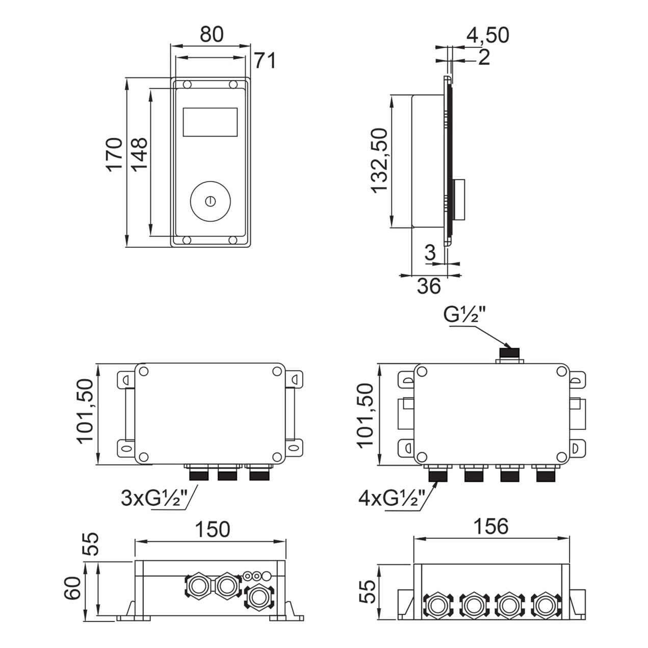 - für den Einbau in leicht zugänglichem Verteilerschrank oder Wartungsklappe außerhalb des Duschbereichs