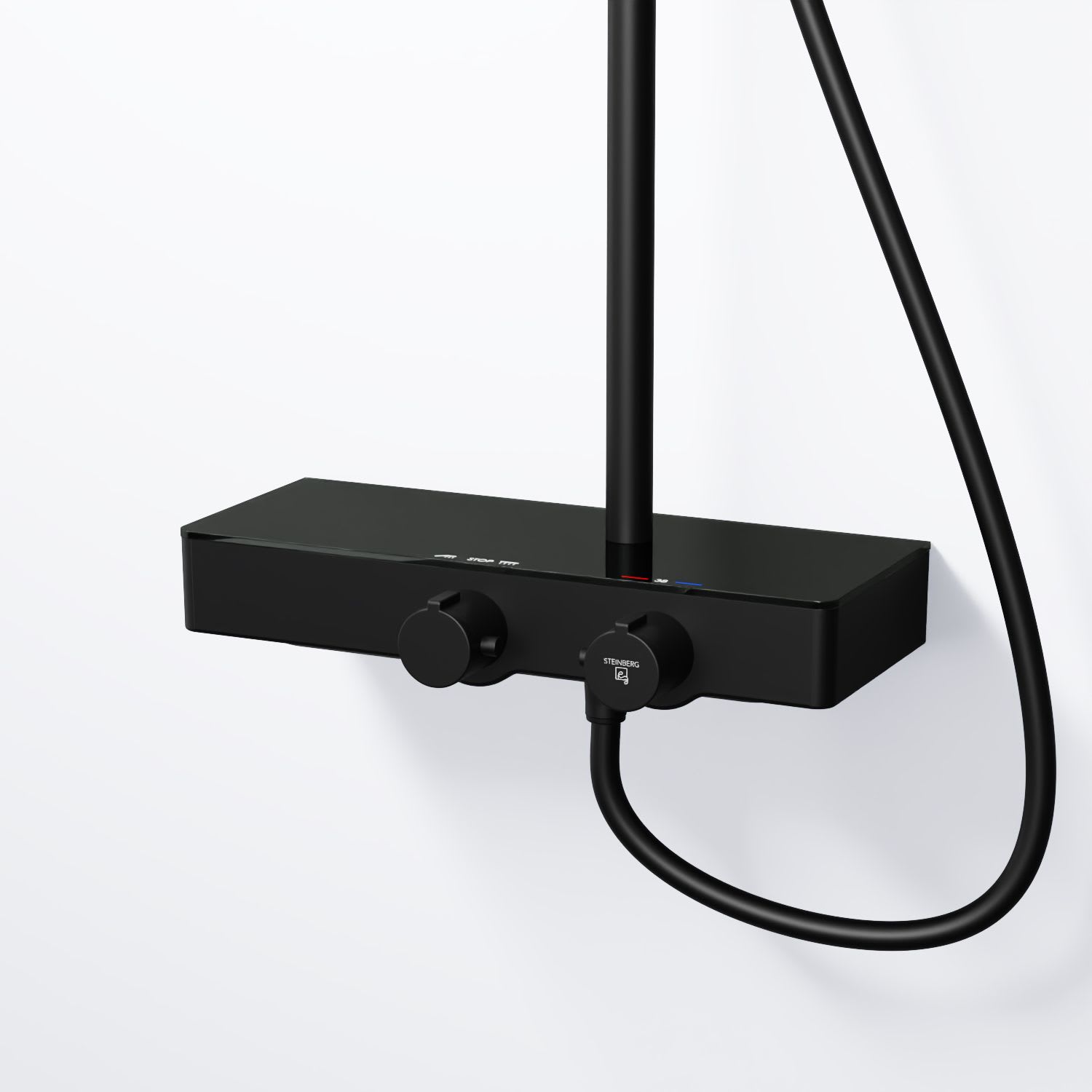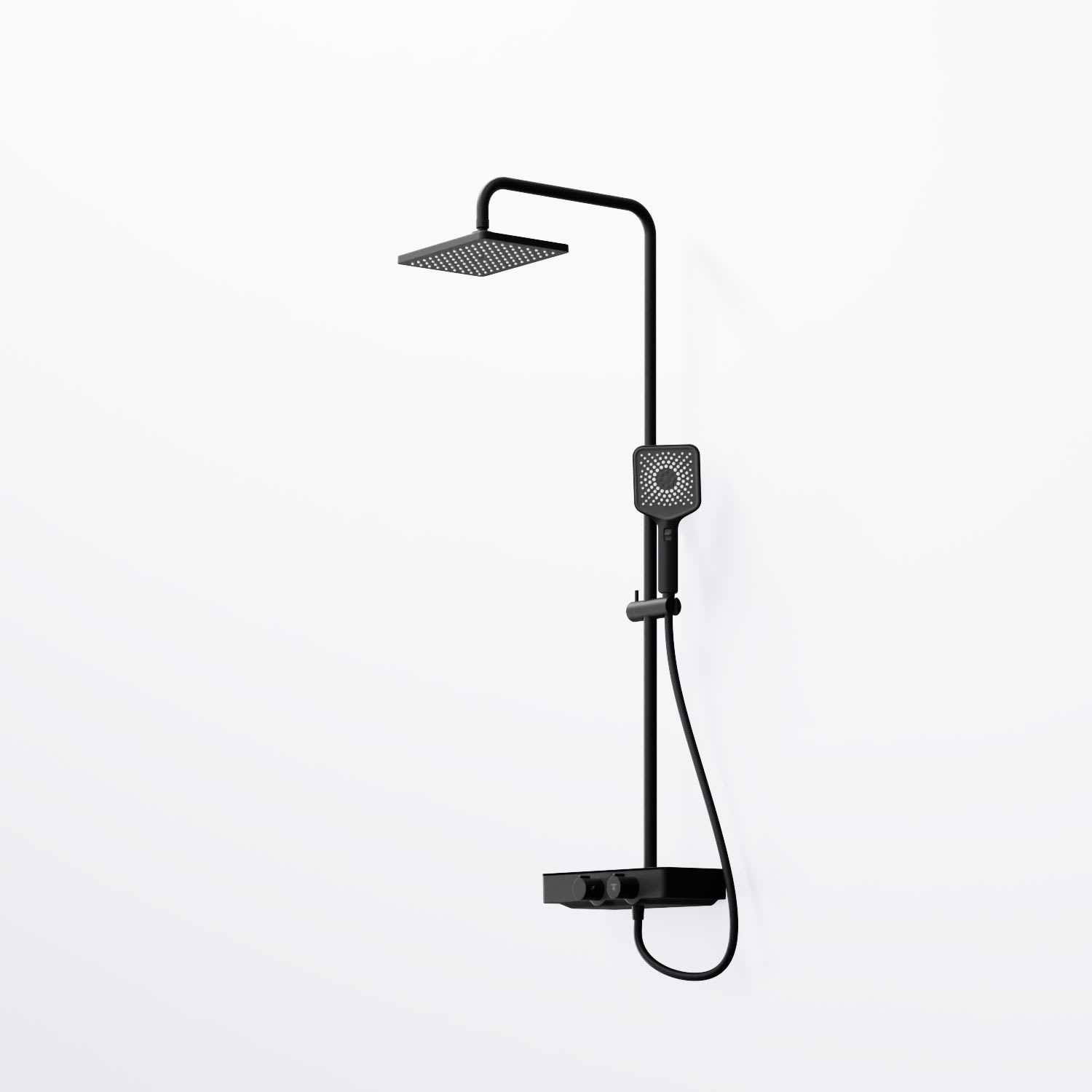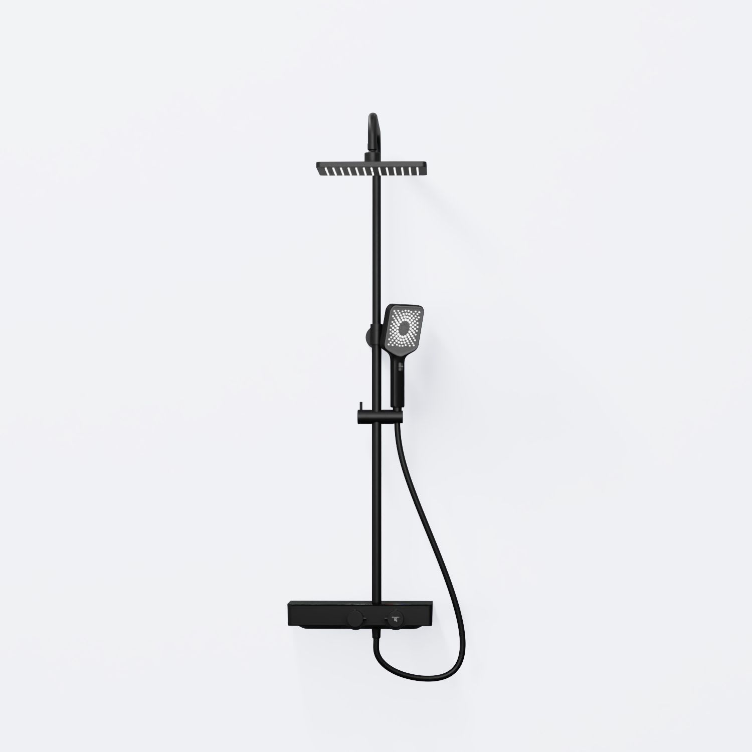Kronenbach Lima 2.0 Black Duschsystem mit Thermostat, Kopfbrause Ø 22,5 cm