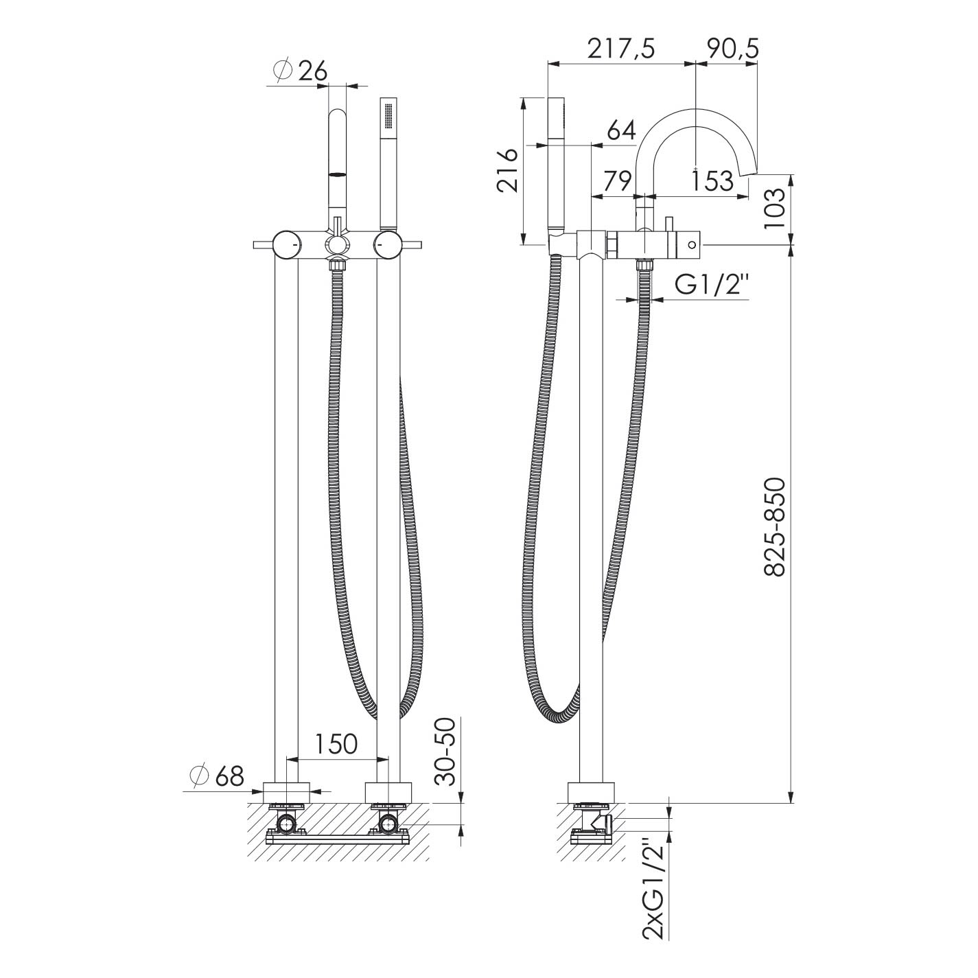 Steinberg Serie 100 Freistehende Wannenarmatur