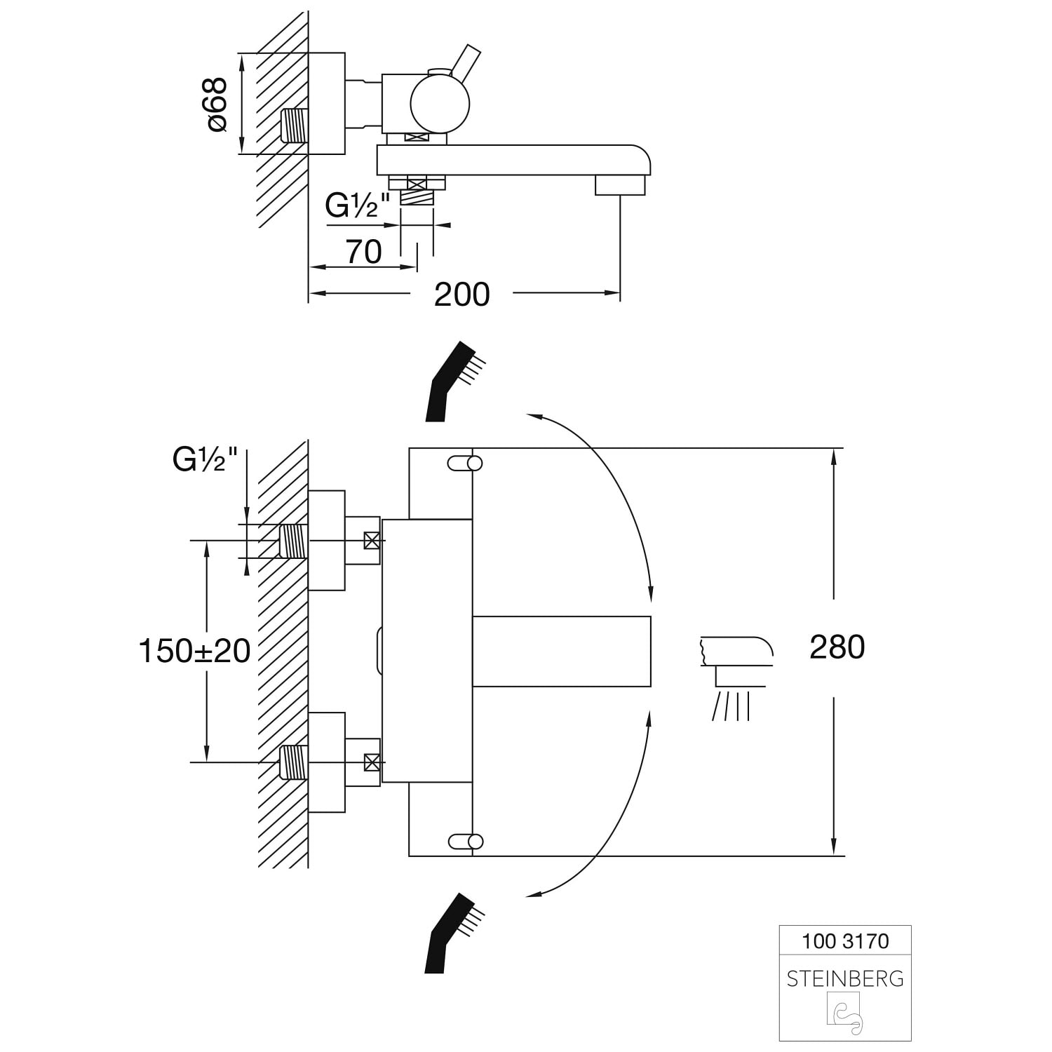 Steinberg Serie 100 Wannen-Aufputzthermostat