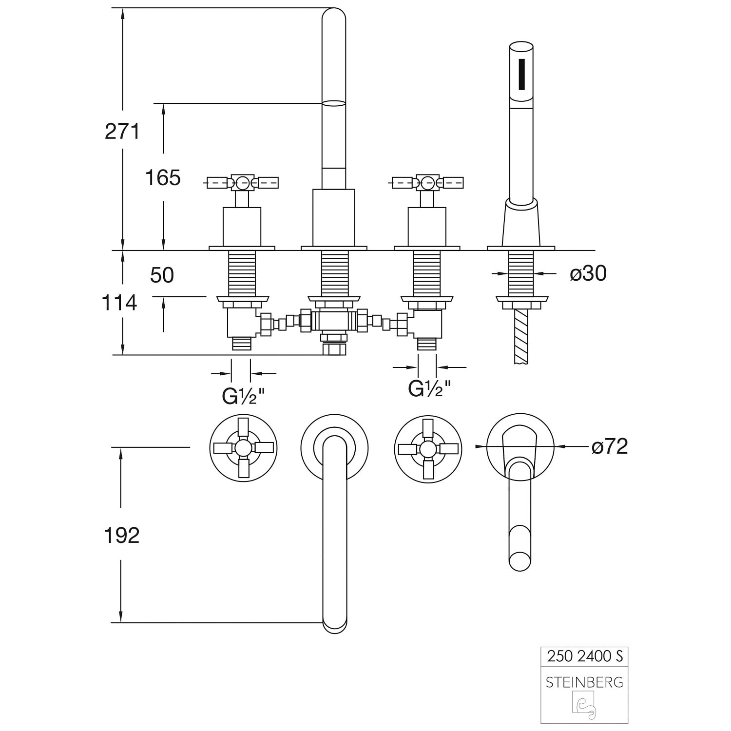 Steinberg Serie 250 4-Loch Wannen-Standarmatur