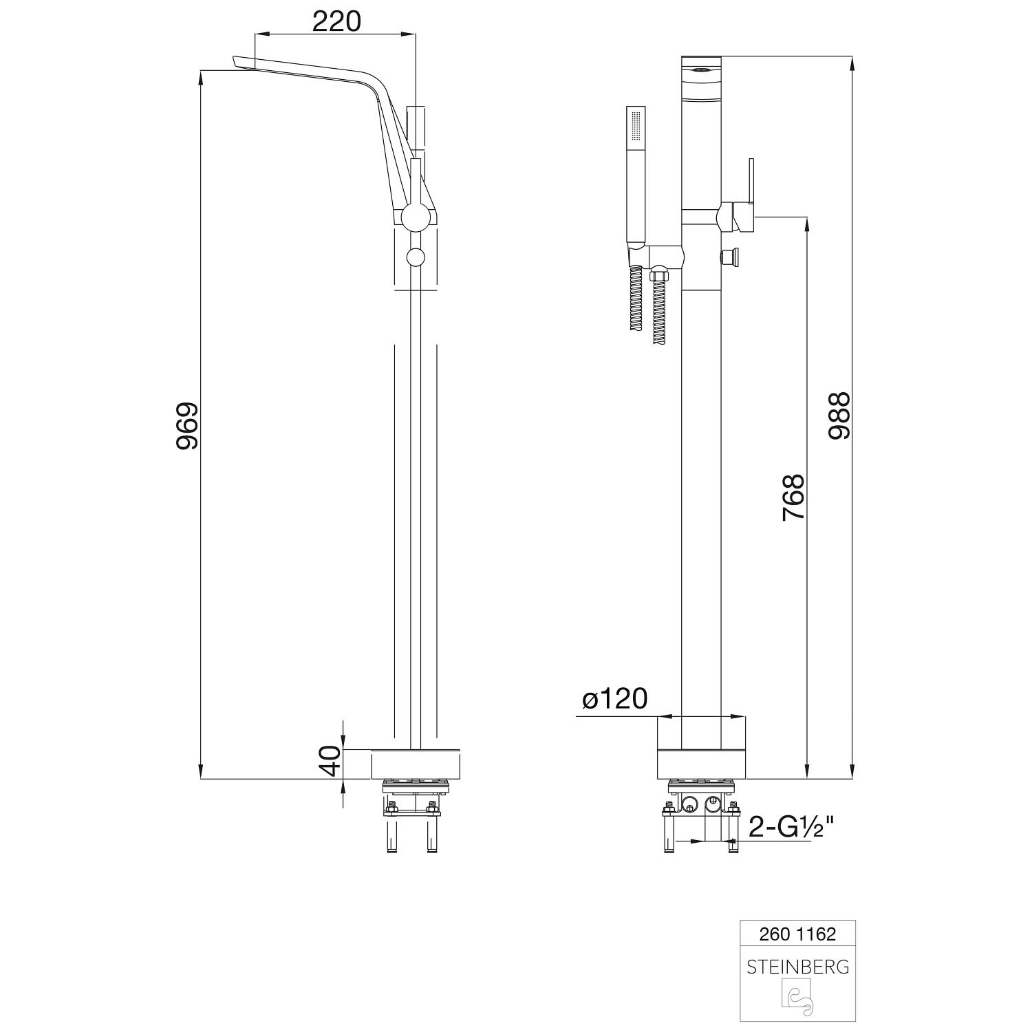 Steinberg Serie 260 Freistehende Wanne- und Brause-Armatur