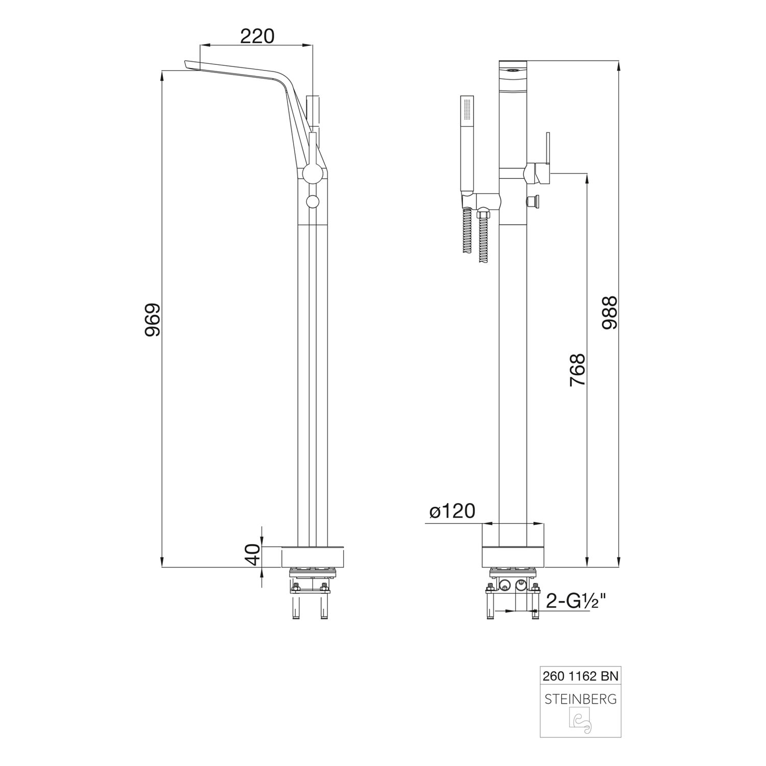 Steinberg Serie 260 Freistehende Wanne- und Brause-Armatur